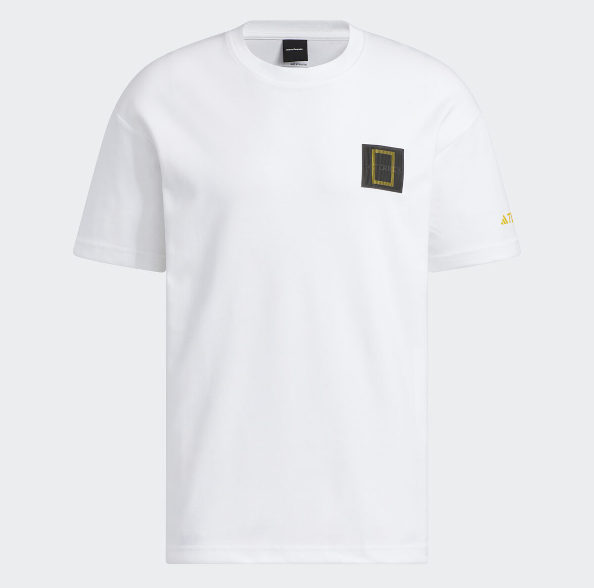 擁有兼具登山背帶的口袋、易收納的防風帽,更有可調節的袖口;左袖上綴的標章,從不同角度看時,會在TERREX 與 National Geographic 之間變化,背後反光線條設計,則為夜間行進增加安全性。
