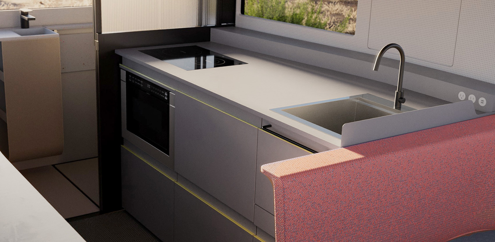 - 一個強而有力的電池系統,可以在不充電的情況下提供長達一週的續航力,搭載高達 3 千瓦的太陽能發電,這款露營車可以在沒有化石燃料的支援下,滿足戶外居住者的基本生活需求。