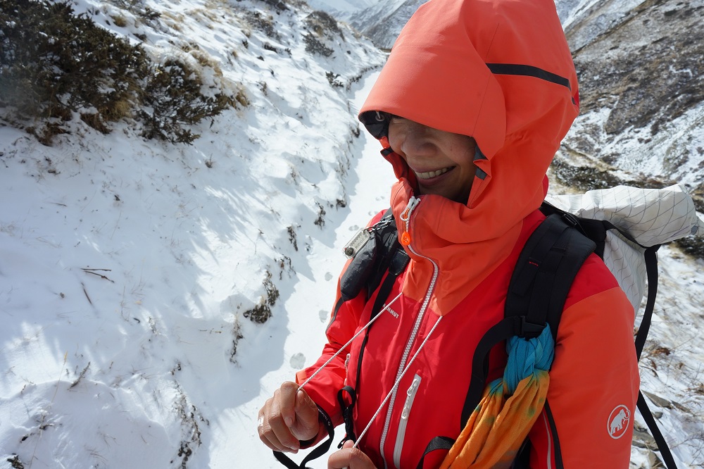尼泊爾的雪季健行總共45天,其中有30天是在海拔三千以上行走,除了氣溫都是負10~15的酷寒之外,還有下雪與下雨的高度機率。在背包的體積與重量有限的情況下,我只能帶一件風雨衣。打開裝備衣櫃清點,有的防水係數高,但厚度卻不夠,擔心多天數的使用會容易磨損。有些符合期待,但重量卻因為雪裙無法拆卸而過重,適合滑雪卻不適合雪地健行。