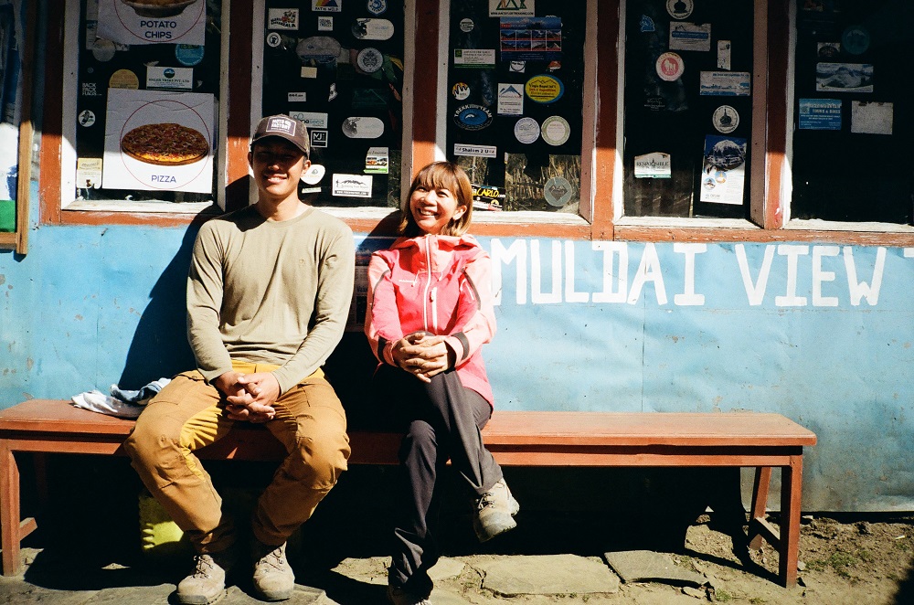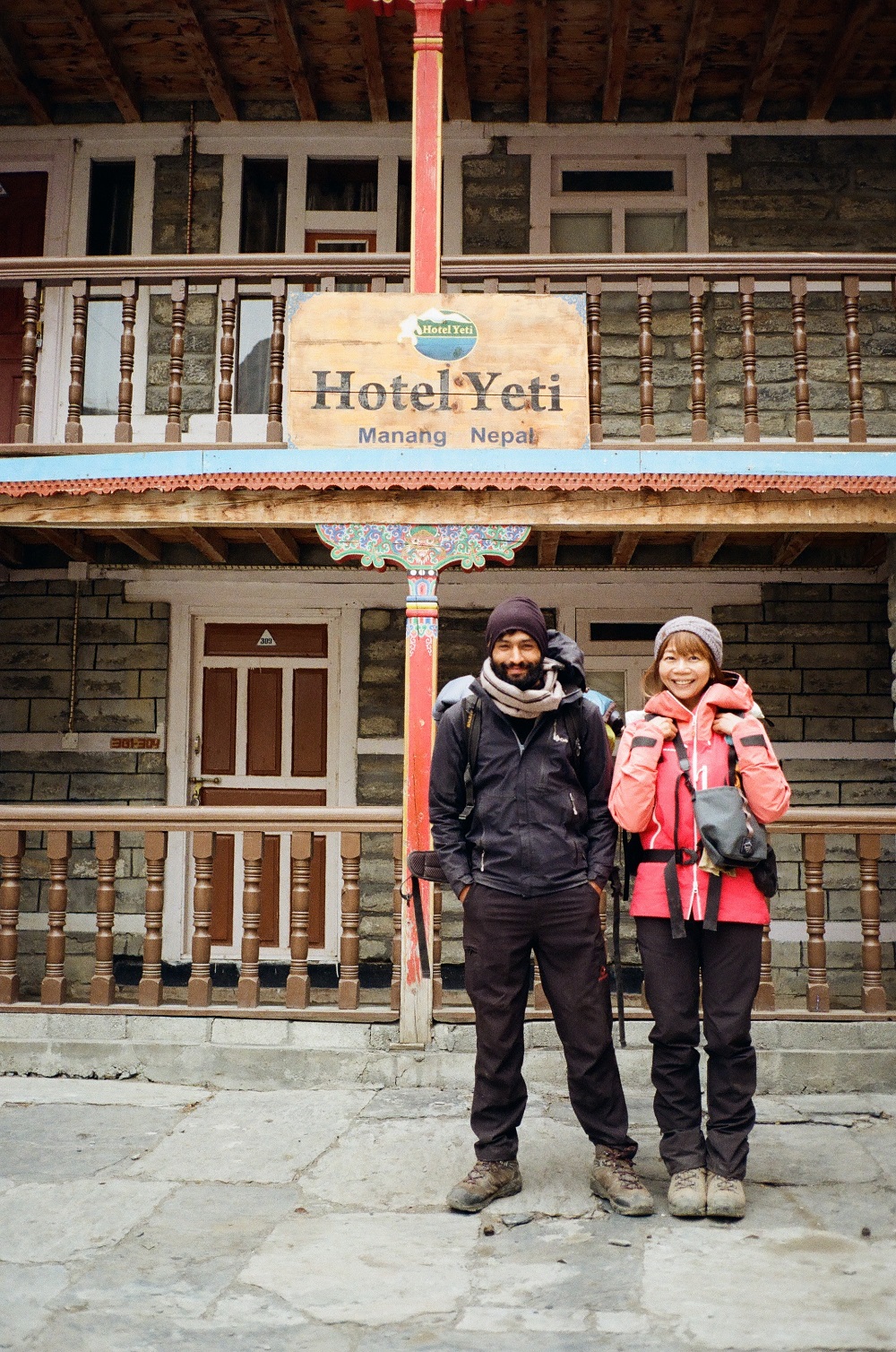 ▲嚮導和我在馬南的山屋前留下身影,他和我差不多高卻超能背!
