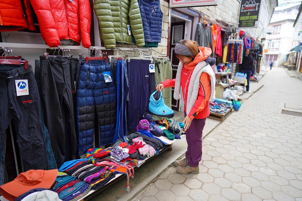 步道的時間隨著海拔的變化、距離的拉長、日數的增加,這些細節開始會深度的考慮與仔細的思考,畢竟沒有什麼比帶了一件不合適現場的外套更厭世了。而且無法更替的情況下,甚至也沒有辦法在尼泊爾購買。尼泊爾雖然是登山者的天堂,也是仿冒品的大本營,在大街上有各式各樣的仿冒品,從毛帽一直到鞋子都有各種仿冒創意。也要提醒大家,在尼泊爾購買裝備的時候,千萬要再三確認是否為正品,若是要我這幾個月來的建議,我是絕對會從台灣帶過去的!