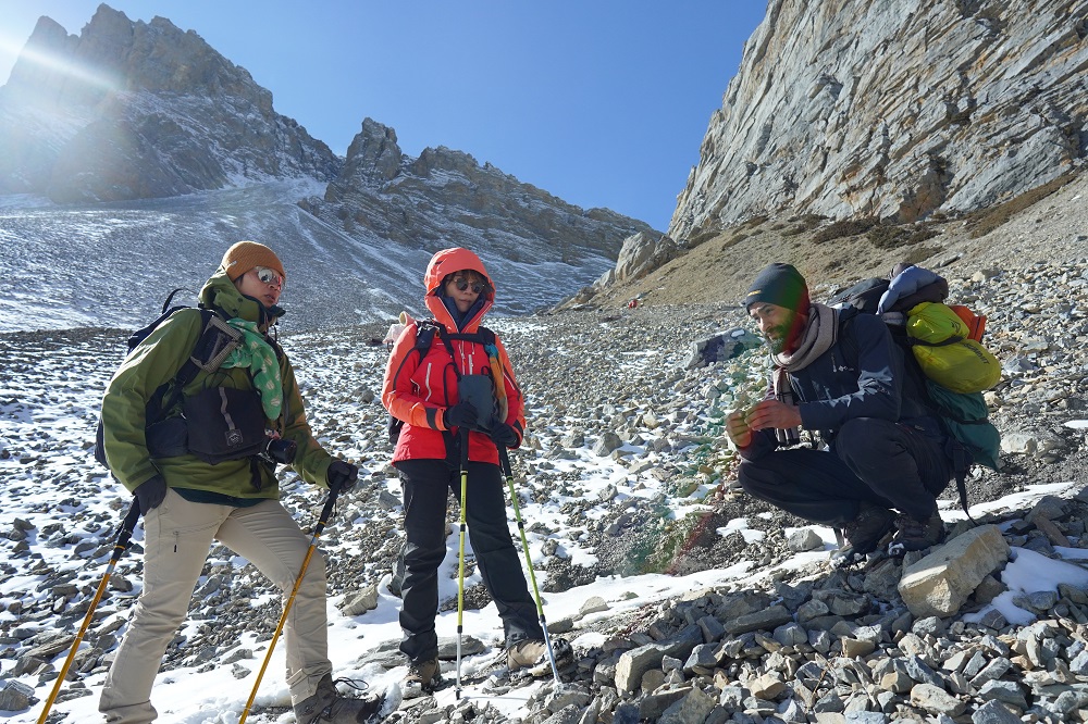 ACT 大多採逆時針的走法,才能確保高度是逐漸上升,較容易高度適應。重頭戲則是駝龍埡口5416公尺。還記得當天早上凌晨四點吃早餐時,看到牆上的溫度計顯示的-25度,心頭一緊。是我從未經歷過的低溫。那時候身上穿著一件底層衣、羽絨外套與艾格,有一點點擔心是否無法抵擋低溫與強風。