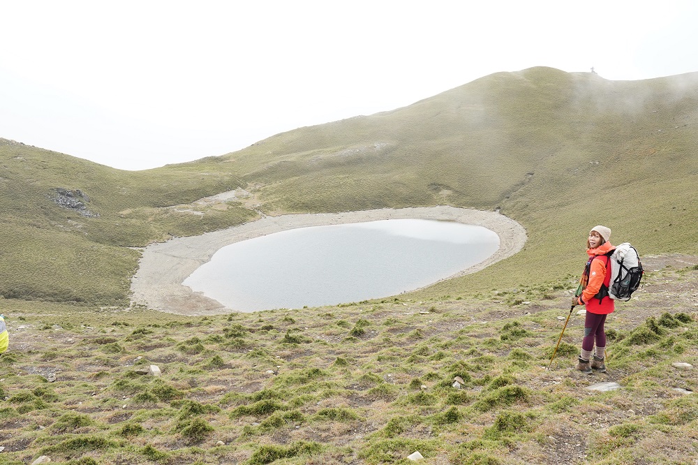 ▲第一天上嘉明湖,就等了快一小時,剛好一陣大風將霧吹走,幸運地露出全貌