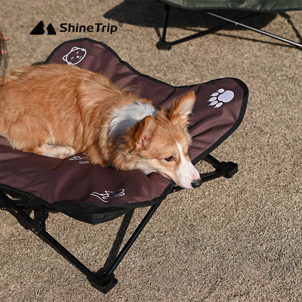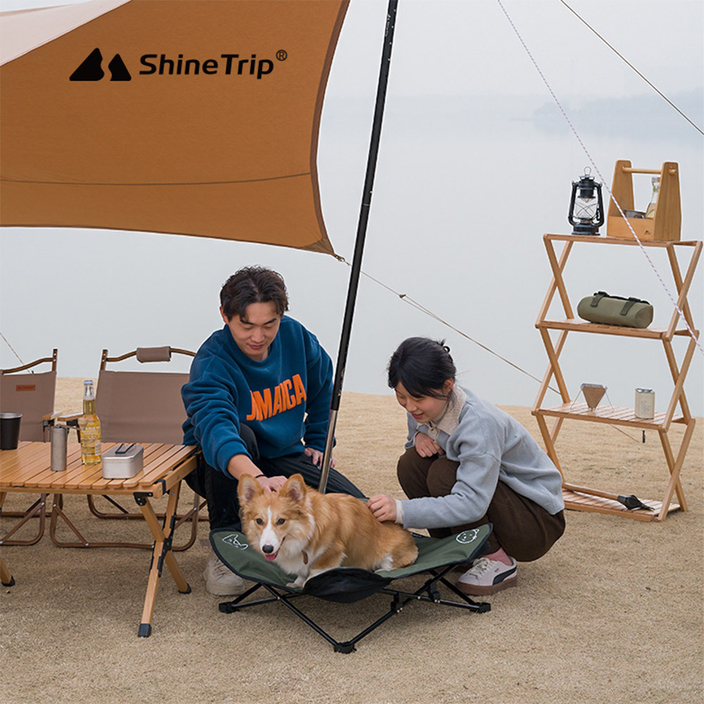 露營用品品牌 Shine Trip (山趣),推出的寵物折疊床,是採用 600D 牛津布製成的,具有抗撕裂、耐撕咬的耐用性,並有防水效能,更方便主人清潔。與 Helinox 一樣採用鋁合金支架,重 1.55 公斤。