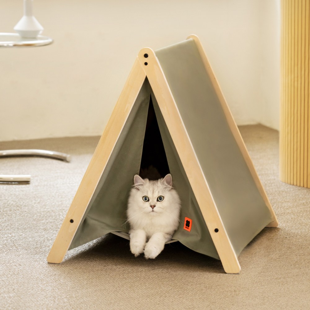這款帳篷寵物窩,結合了帳篷與吊床設計,放在家中也好,或是帶到營地,都可以提供毛小孩一個舒適的休憩空間。且顏色搭配相當柔和,除了原木的溫潤質地,還可選擇黃色或是綠色兩種相當清新的色調。帳篷還是採用防水、抗撕裂的布料,就算毛小孩興奮地抓扯,也不太需要擔心破損問題。