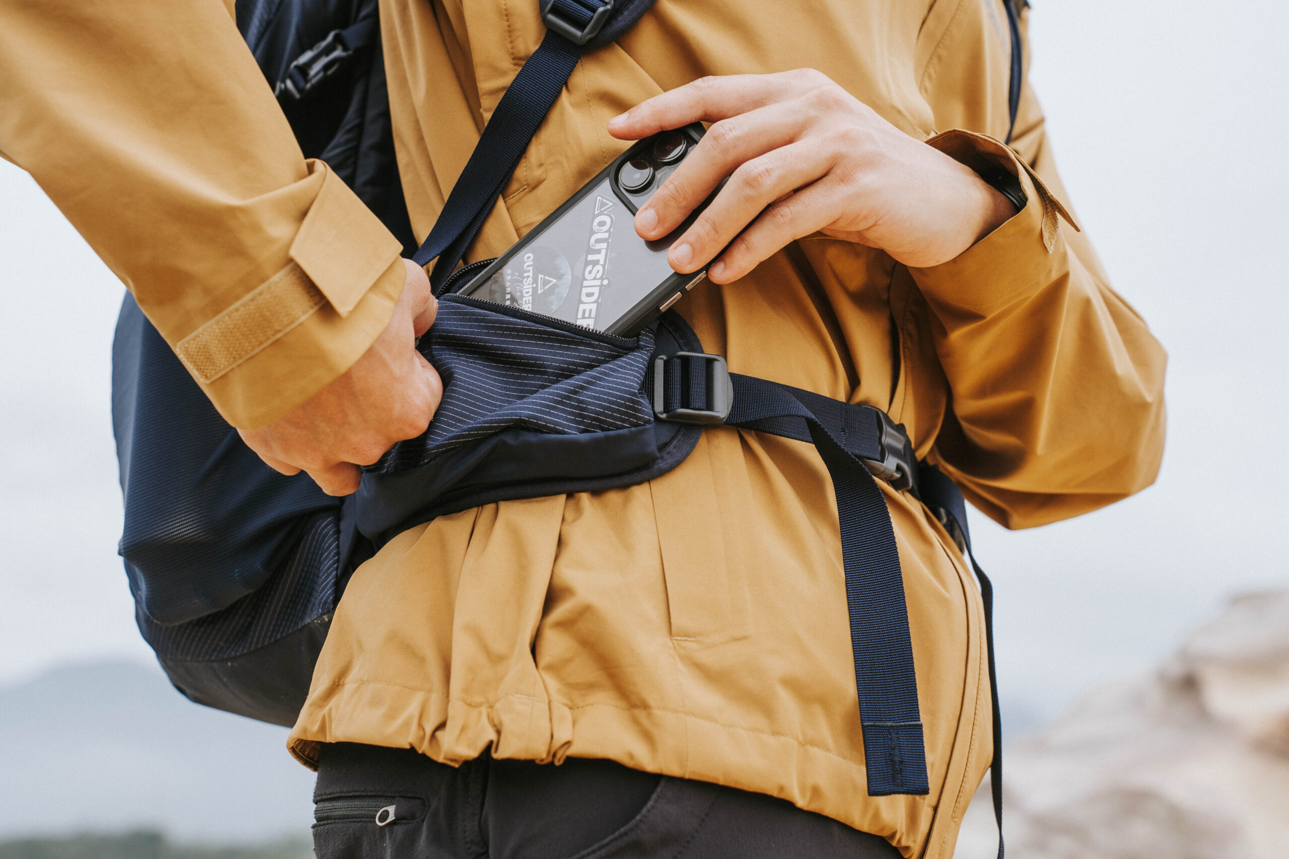 ▲ Gregory Miko & Maya 全新設計的手機友善臀帶口袋,能放入 iPhone 14 Pro 及行進糧。