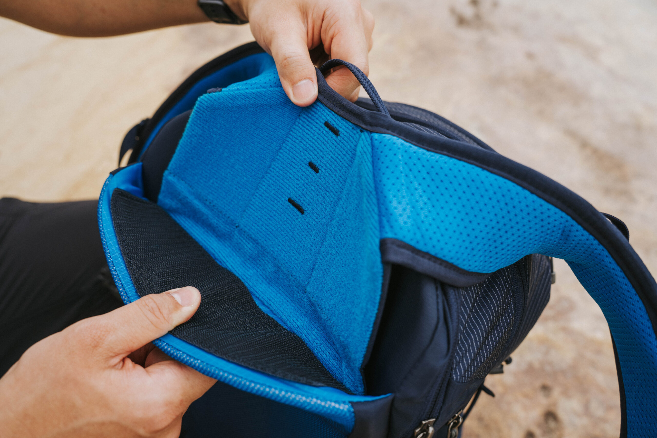 Arrio 高透氣系列,「我覺得它的泛用性很廣,非常適合都會生活使用。」雖然產品定位為戶外休閒包款,但 Charles 更習慣將它作為日常上班使用,背負系統使用 FreeSpan,讓在悶熱潮濕的台北行走,背部也不易濕漉難耐,而水袋隔層則能用來放置筆電,且附有雨罩設計,即便遇到突如其來的降雨,也能確保物品不被淋濕。