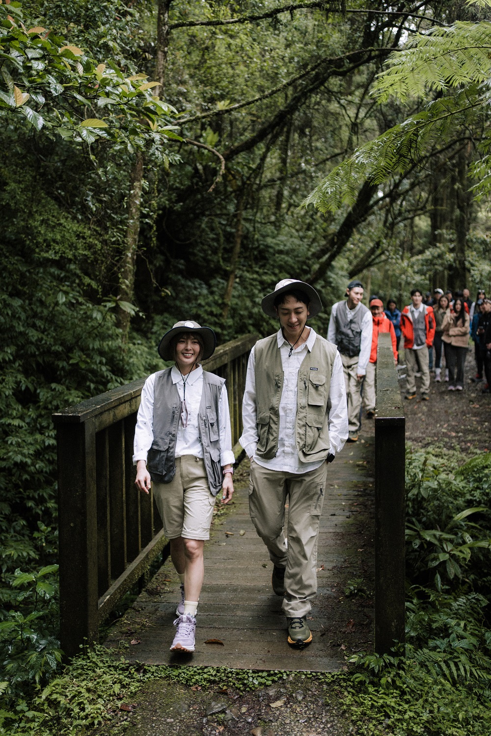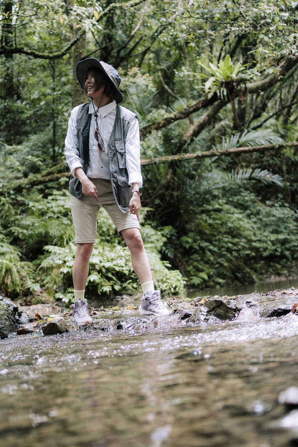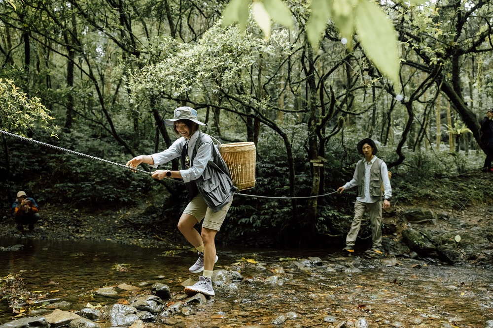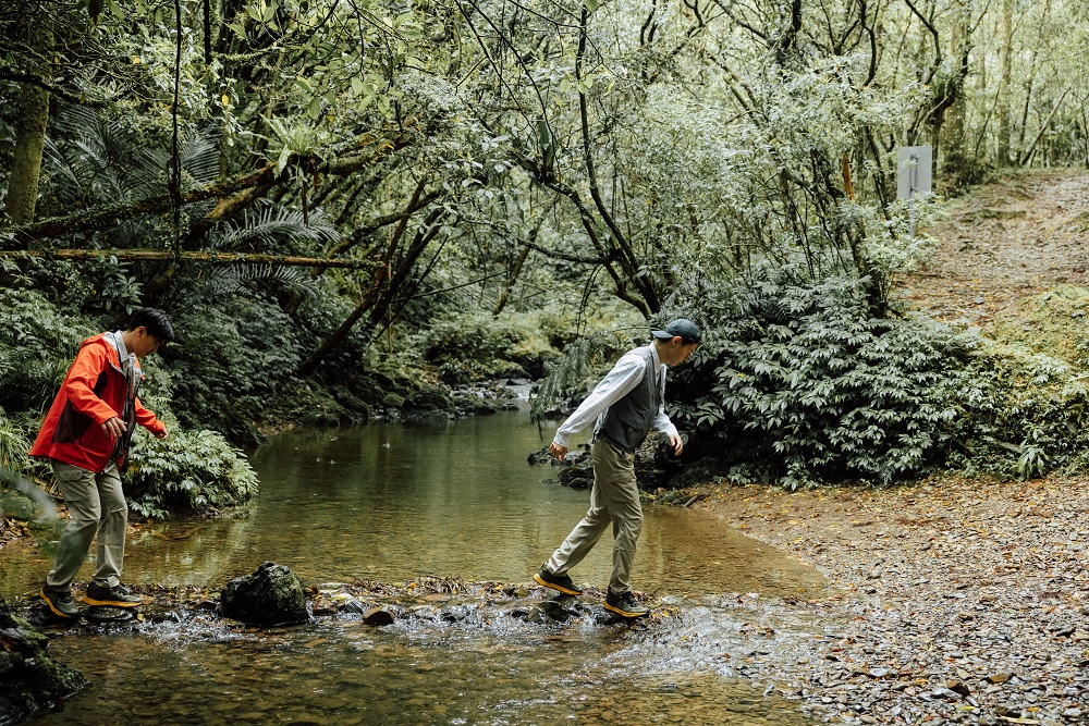 Columbia這次帶大家體驗的服飾,以「順應自然,量身打造」為主題,穿著能夠順應今天在淡蘭古道中的每個挑戰的服裝,透過漫步在茂密原始森林、穿越清澈的淺溪及獨木橋等多樣化地形,搭配防曬透氣襯衫、工裝風格多口袋背心、兩截式防潑快排褲等,我們一群人彷彿如同山羊一樣自由地在任何小徑上,走的怡然自得。