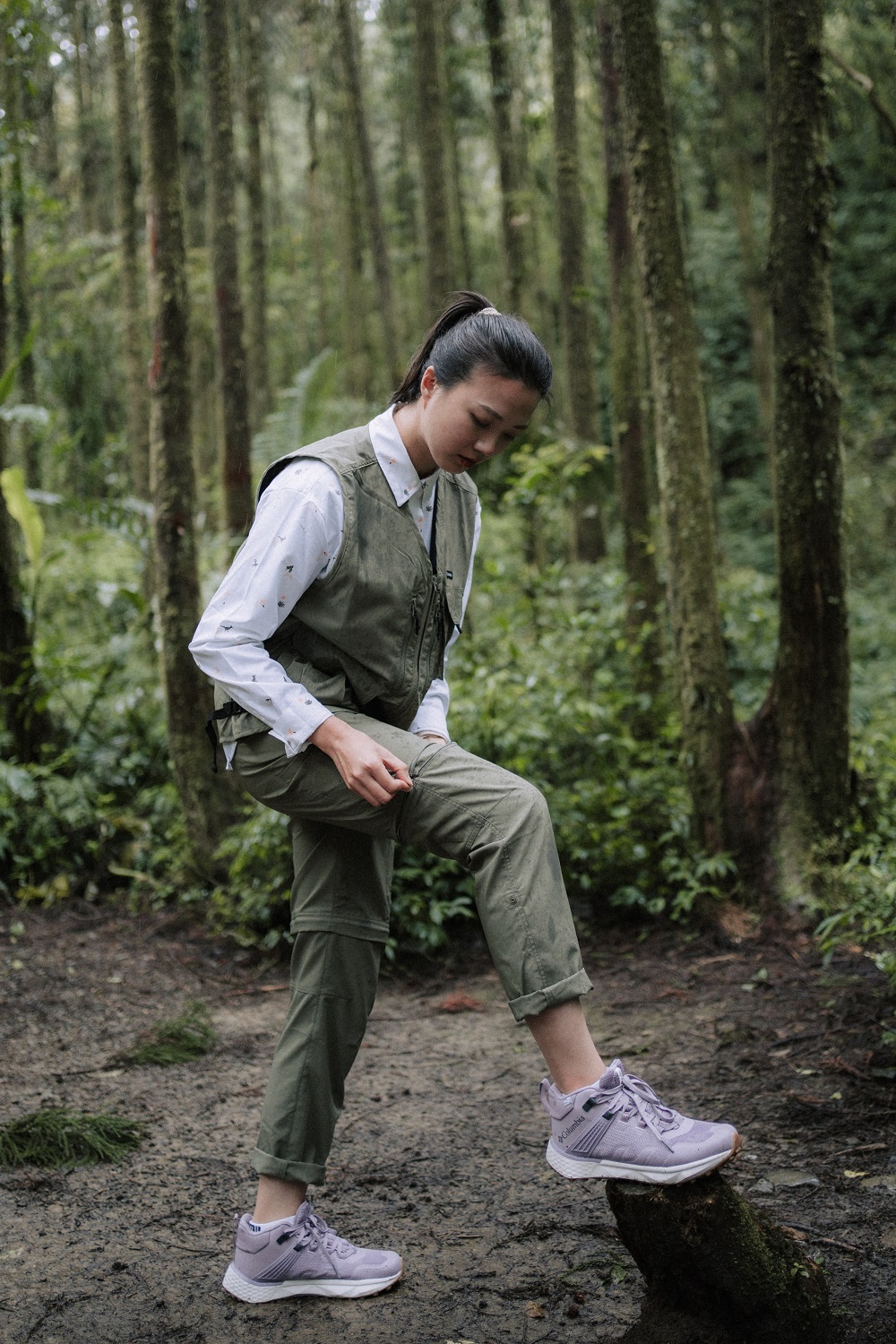女款的雙截式褲款可順應環境自由選擇長短,一褲兩穿的設計在市面上女款比較少見,且有 Omni Shade ™Broad Spectrum UPF 50 全新超防曬科技,更有效隔絕 UVA 與 UVB,以及 Omni Wick ™快排速乾科技,雖然有被雨淋濕,但回到車上後一下就恢復乾燥。