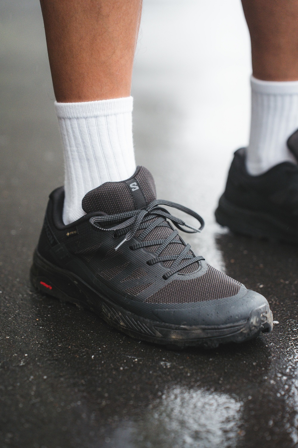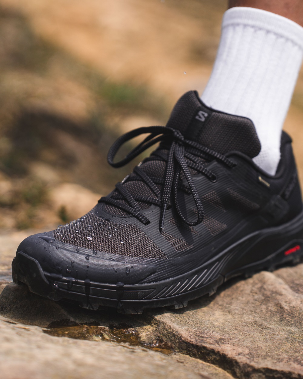 Salomon OUTRISE GTX 使用 GORE-TEX 材質做為鞋款的防水科技,雖然是低筒設計,但下雨天或是在山中過淺溪路段都可以應付。Ryan 也另外發現到,在搭配 GORE-TEX 材質的情況下,上午30度的高溫、下午又遇到下雨,在溼熱的情況下仍保持透氣,完全無異味,也沒有潮濕悶汗的感覺。