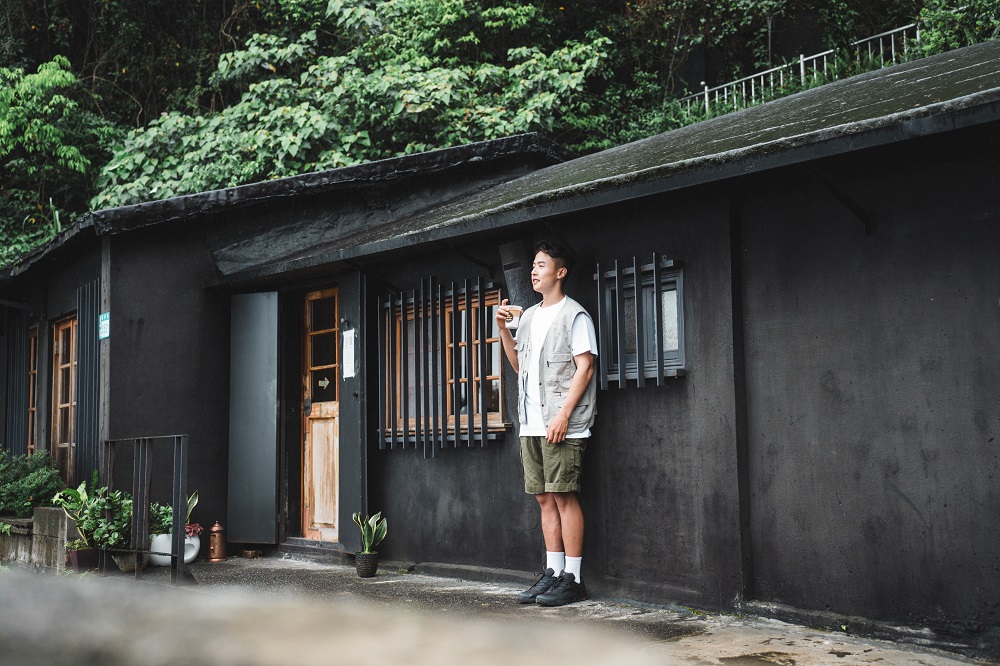 穿越九份老街,走到輕便路,終於離開滿滿人潮的鬧區,繼續直行過磅坑口,就會看見這棟隱身在山城中的黑色小屋—山巴咖啡。「九份多雨潮濕,以前的居民為了除濕,會把房子表面塗上黑色柏油(瀝青),山巴咖啡的外觀便是復刻了以前九份民房的樣貌。」Ryan 向我們解說著。這是一間九份少有的人文咖啡館,同時還擁有可以一覽山海美景的絕佳位置,Ryan 極力推薦來到九份一定要到山巴咖啡好好享受。