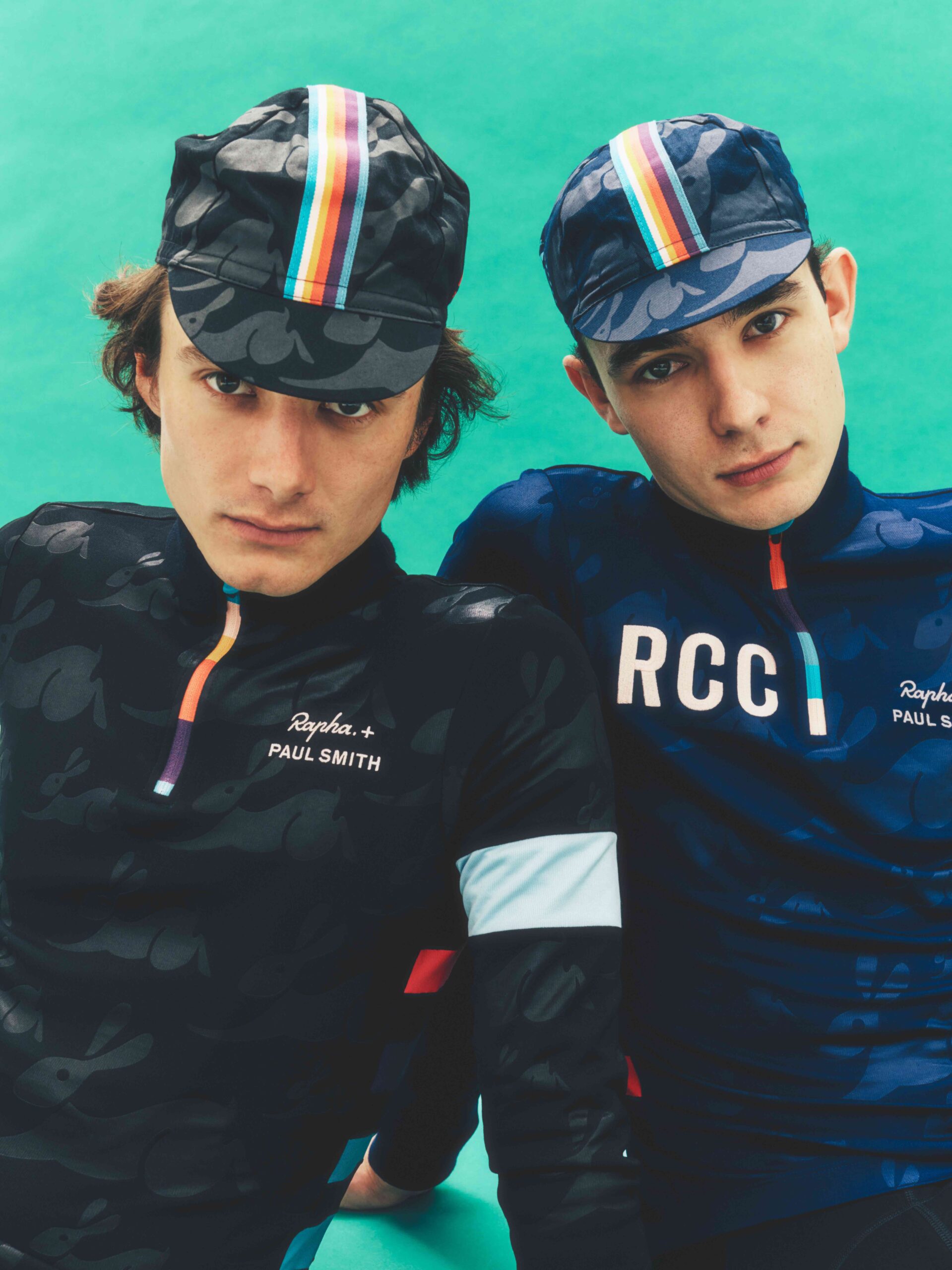 車衣設計利用對比色來表現,傳統賽車衣分為全彩版和經典單色版,後者讓粉絲們可以穿著一起觀看電視轉播的比賽。跳躍的兔子成為設計主題,繽紛的拉鏈邊飾、反光布料和 RCC 對比條紋,呈現了 Paul Smith 標誌性的趣味美學,為 Rapha 功能性設計增色添彩。系列包含了 Classic Long Sleeve Jersey、Cap、Pro Team Shoes、Pro Team Socks 和 Pro Team Full Frame Glasses 等產品。