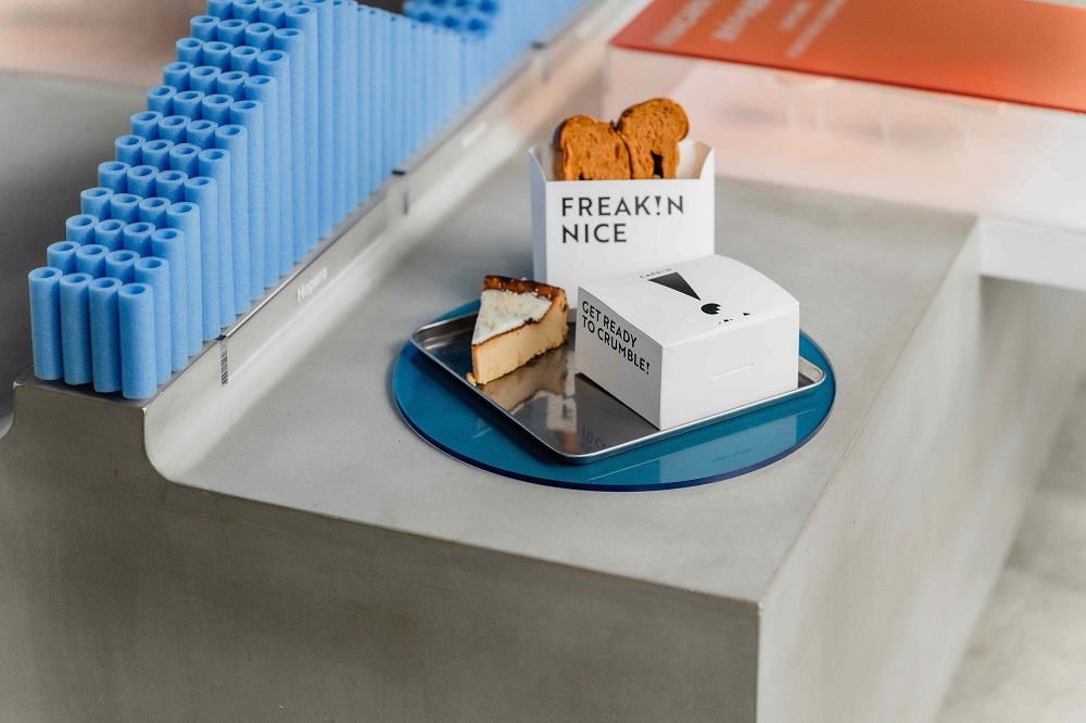 輕食甜點的新選項則以本次合作計畫的視覺主色為研發核心,顏色包含代表 HOKA 上乘飛翔的藍色、彈力與躍動感十足的橘色、和 CAFE!N 品牌色的黑色,藉由顏色特性推出兩款新品項:「蜷尾家監修 泰奶花生吐司」與 CAFE!N 甜點類銷售冠軍的「巴斯克乳酪蛋糕 焦糖新風味」!有別於過往泰奶的甜膩印象,泰奶花生吐司以淡淡的泰式茶香為麵包風味主體,夾層中抹上濃郁花生醬,相輔相成,創造出口感清爽的新體驗;口感軟綿的巴斯克乳酪蛋糕則是 CAFE!N 最受歡迎的蛋糕商品,本次推出全新風貌,加入手工熬煮的焦糖,濃郁的焦糖香甜不膩,讓巴斯克蛋糕多了另一種新選擇!