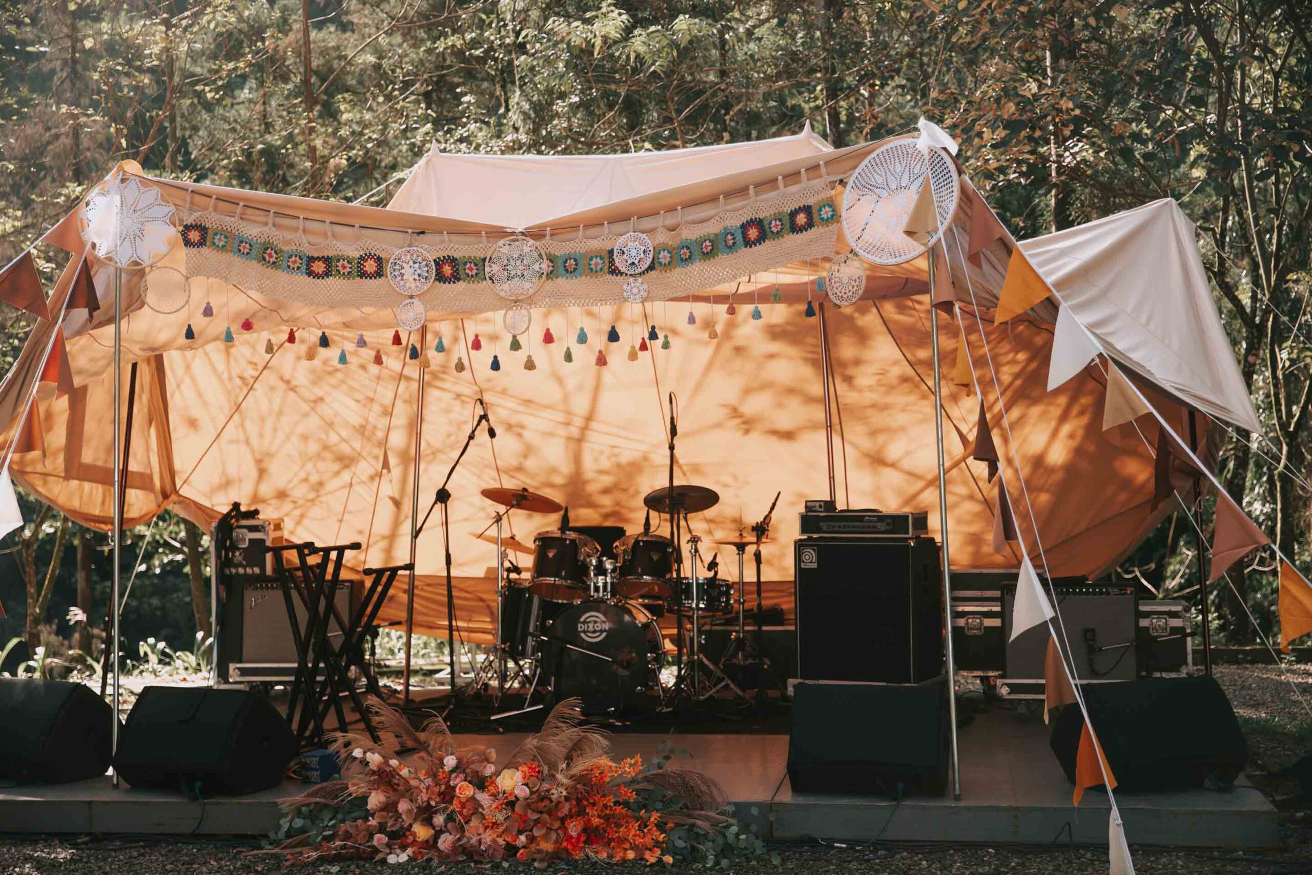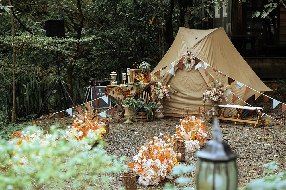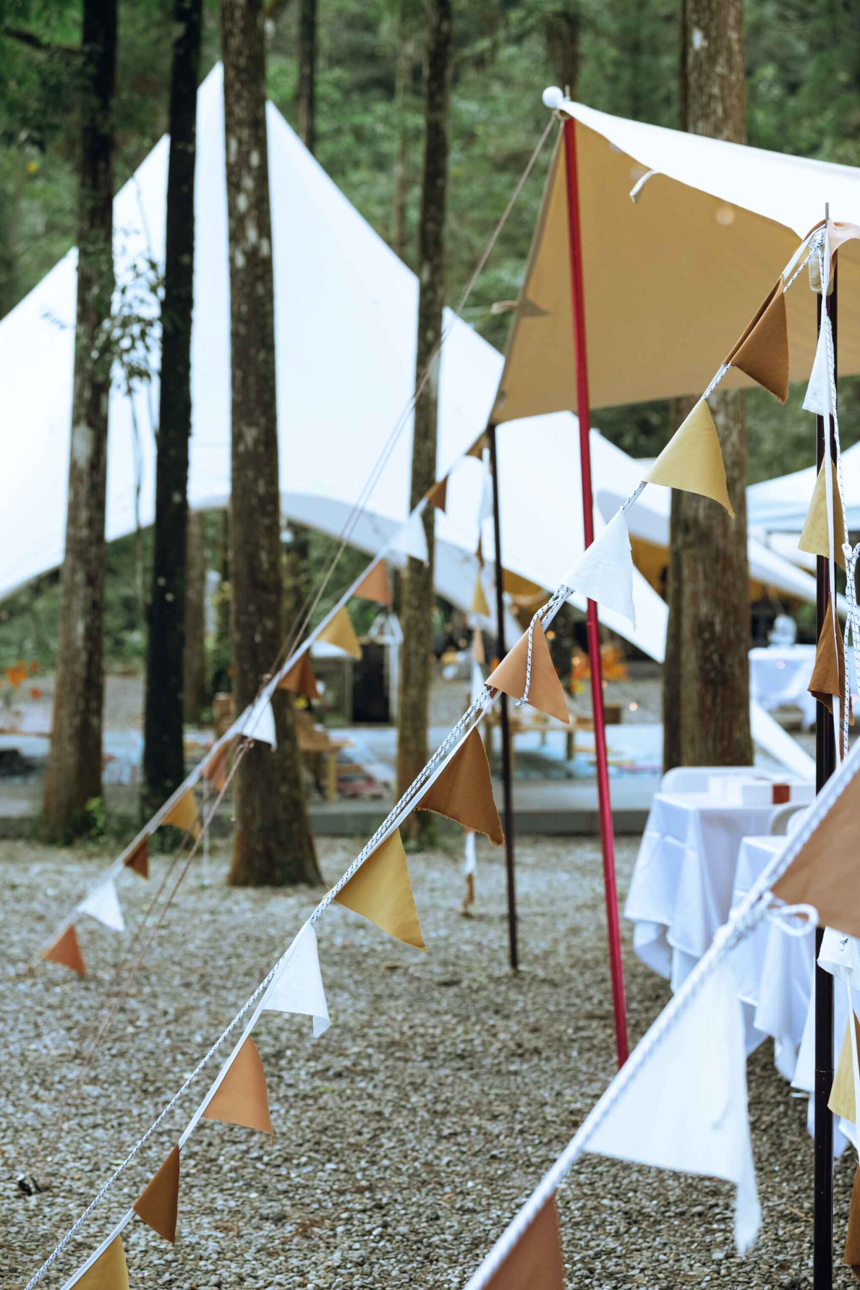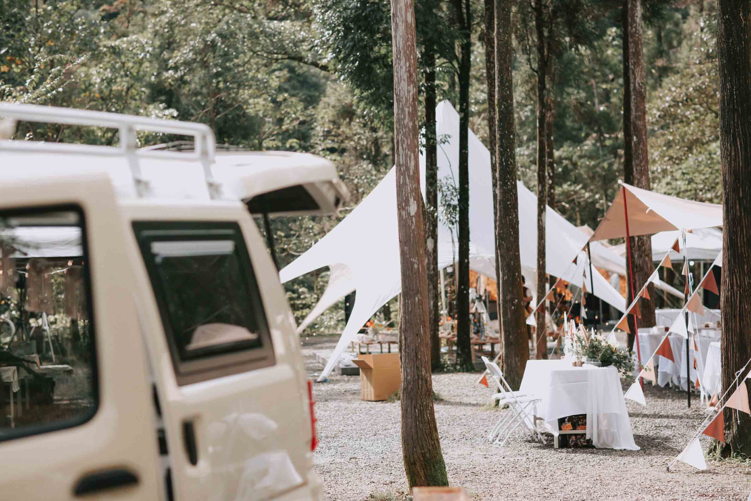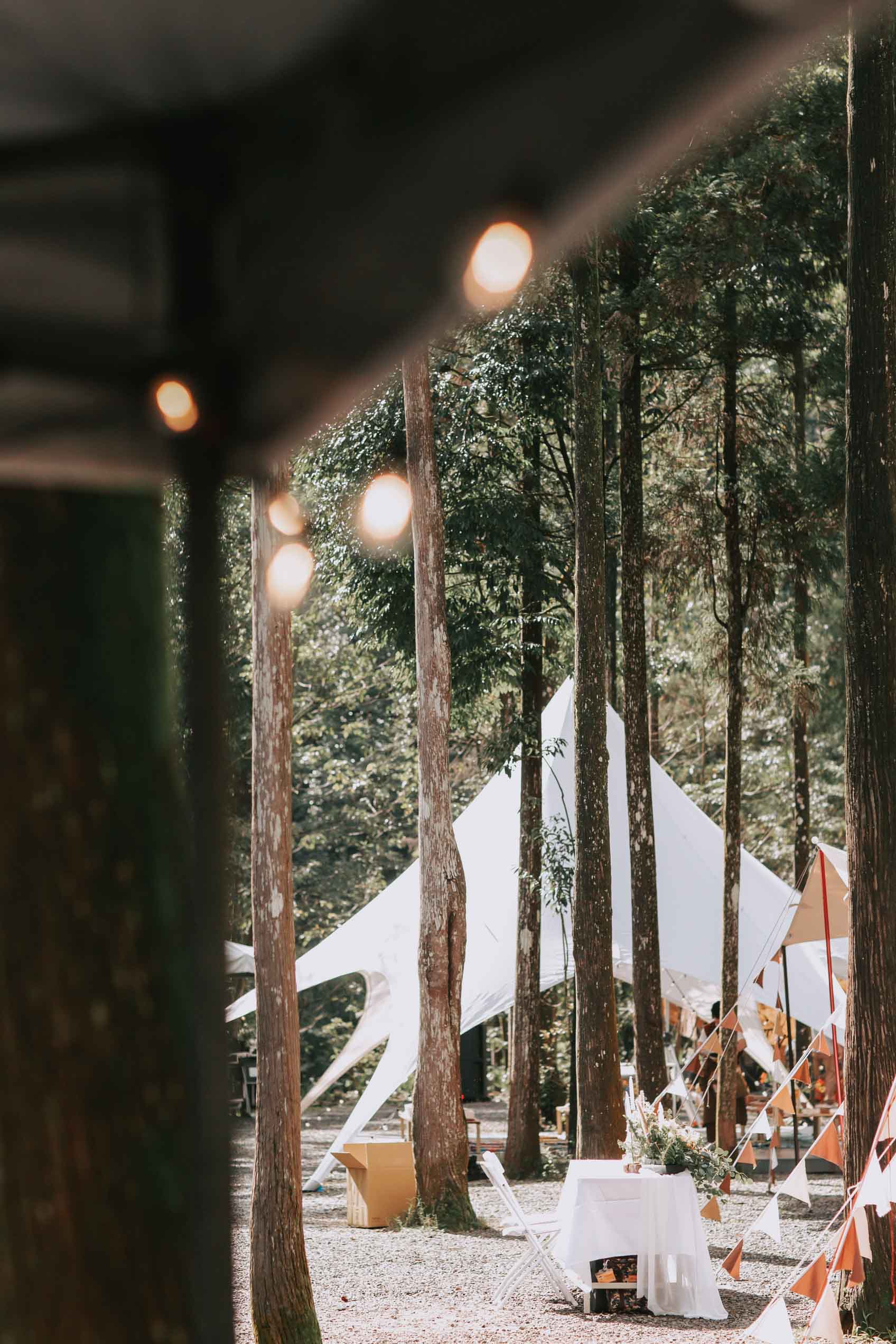 NBJ 與 Sherry 選擇辦在十分自然露營區,此地有非常漂亮的林相,但也因為露營區被許多樹木切分,導致場地較破碎。兩人就提醒,如果想要舉辦在露營區,要先知道場地的狀況,以及最多可以容納多少人。