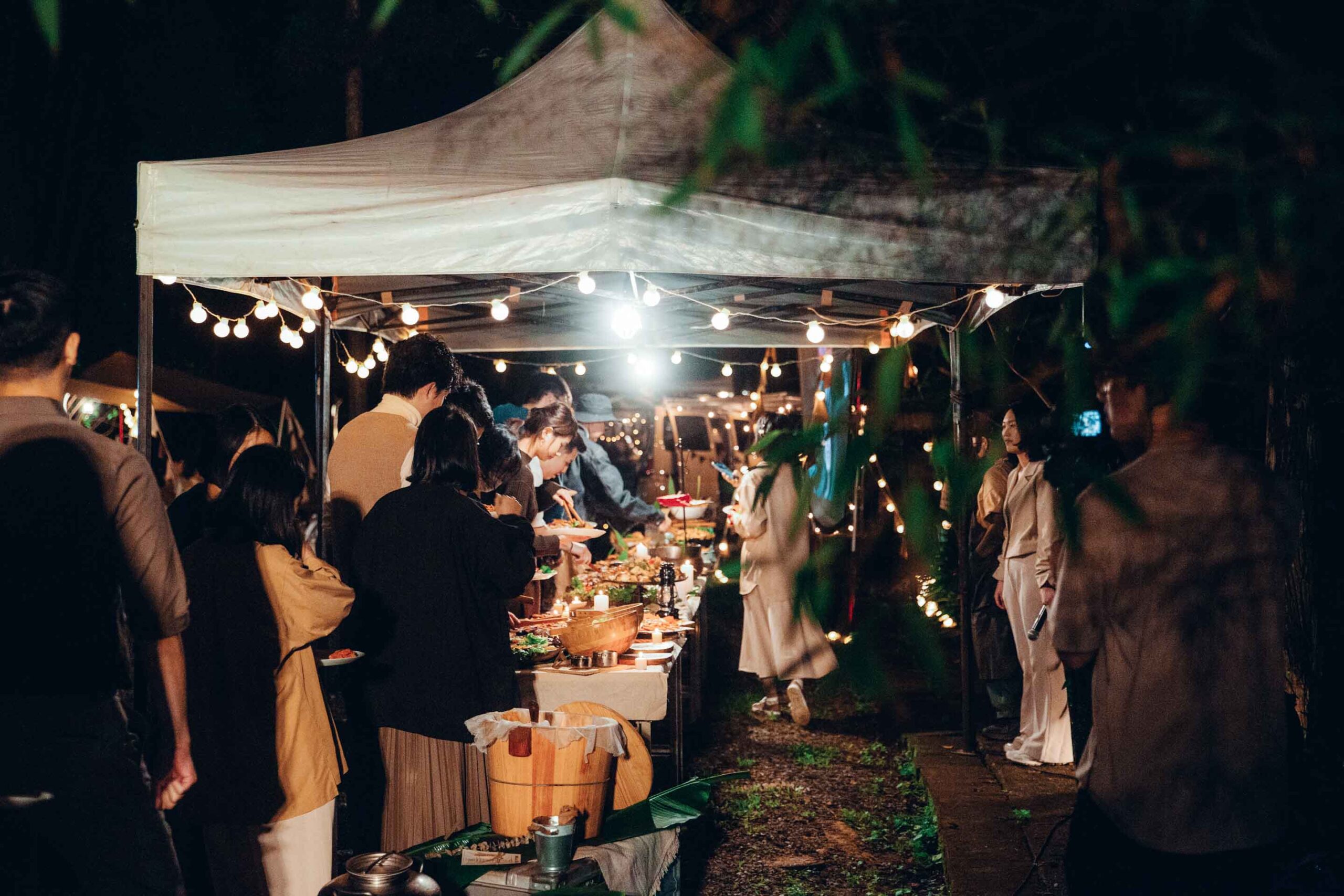 前述提到的樹木問題,會導致無法讓所有帳篷、天幕架設在一起,以至於動線要更費心安排。同時,大頂的天幕也會因此受限,而導致可容納人數變少。所以了解場地的先天限制是很重要的,也要先抓出場地的容納人數上限,避免邀約的人太多,而導致婚禮品質下降。