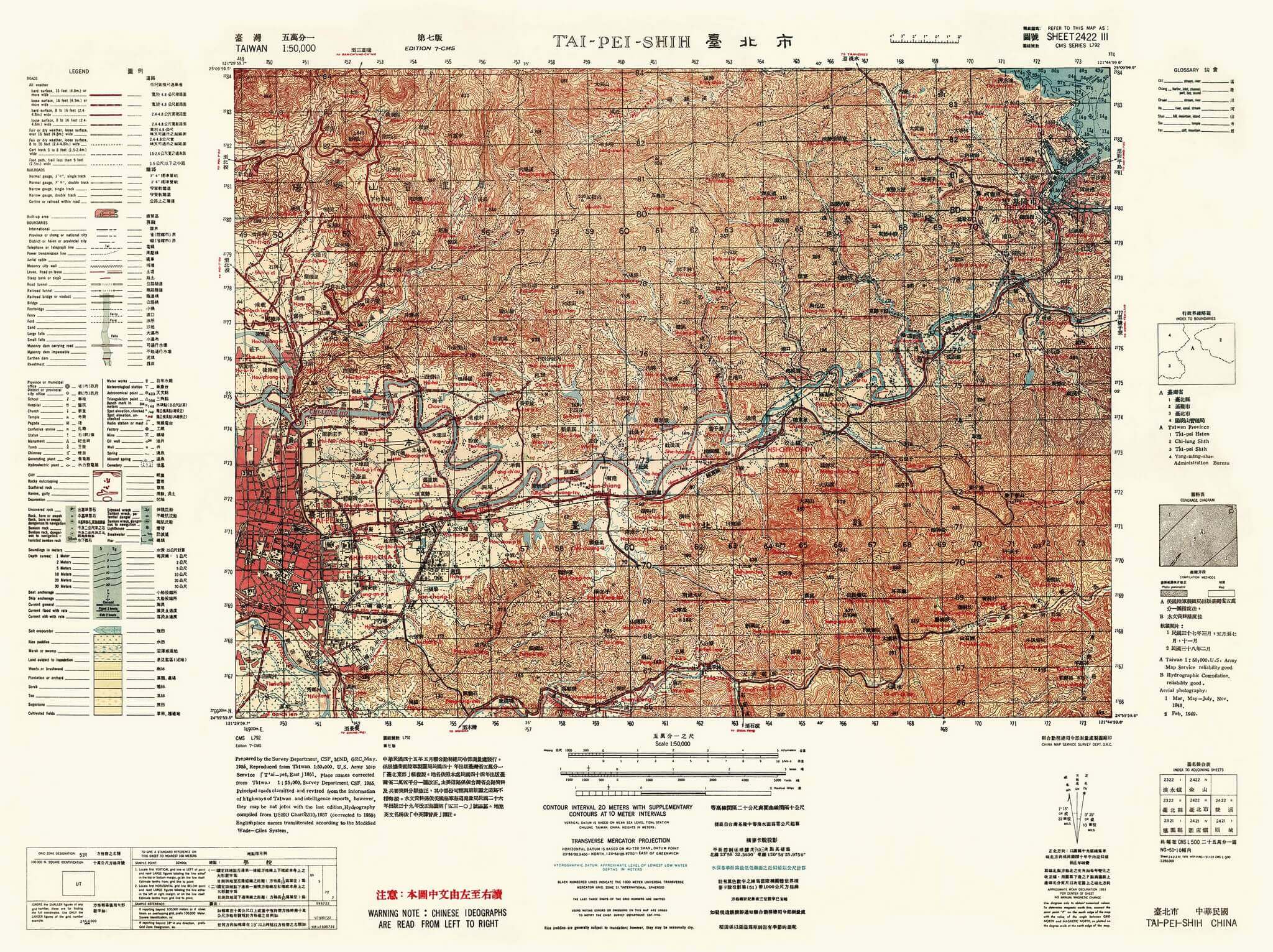 光復後的臺灣地形圖測繪,一方面從接收與複製日版單色地形圖開始;另一方面則與美國陸軍製圖 US Army Map Service (AMS) 局合作航測臺灣,以修訂美軍於二戰期間製作的地形圖。民國 44 年(1955),聯勤測量製圖廠即以美軍圖資發行了譯註美版臺灣五萬分一地形圖。