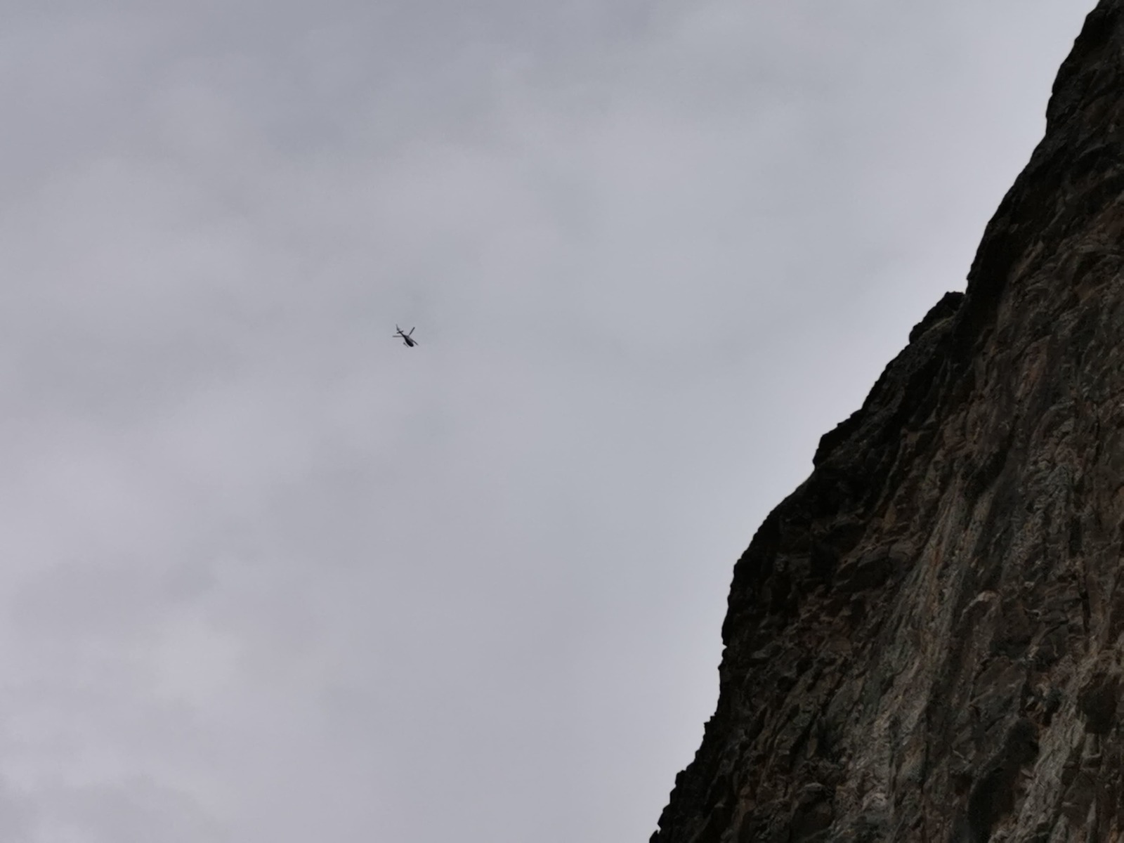 路徑漸漸的下降至河邊正打算小歇,此時後方一個驢隊趕了上來,領頭的是一位戴著紅圍巾騎著馬的青年,他受僱於一家尼泊爾的冒險公司,正要趕往 Himlung 的基地營協助一個美國隊伍撤營,此時後方的天空響起巨大的聲響,一台直升機穿過我們的頭頂往基地營的方向飛去,似乎不到一根菸的時間,這台直升機又從反方向飛了回去!?