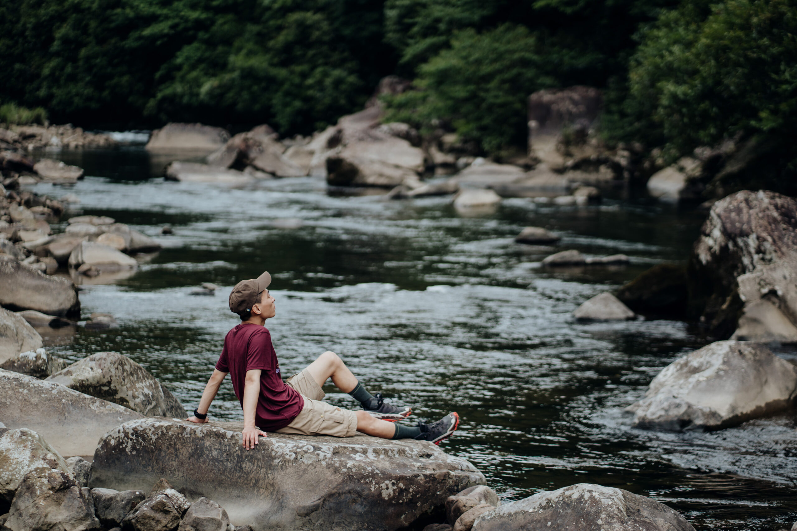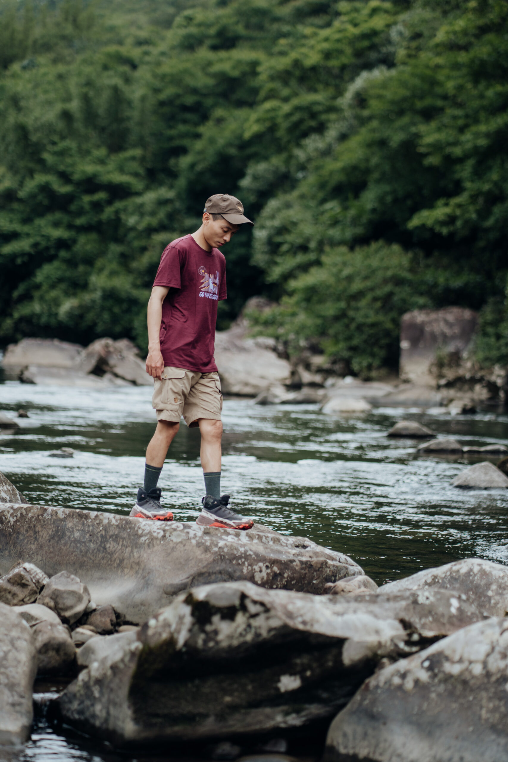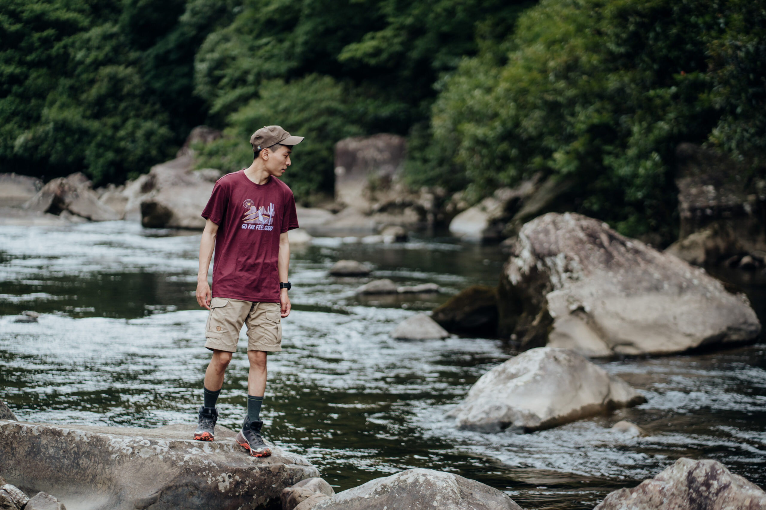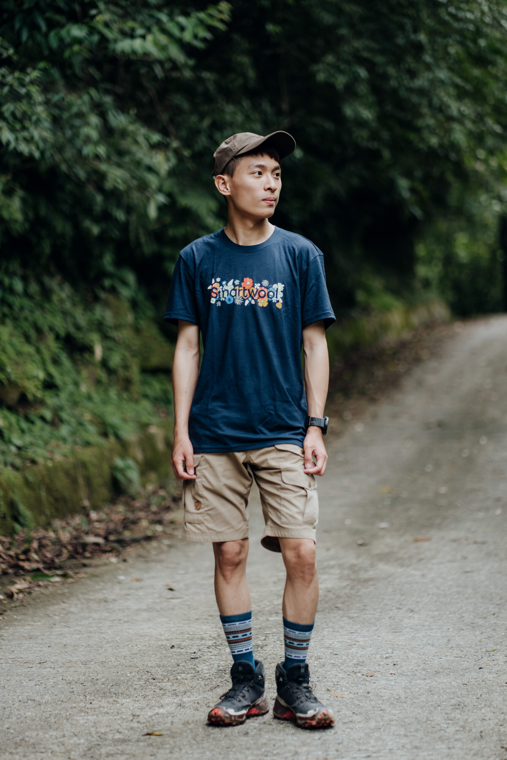 「我是一個怕冷又怕熱的戶外人,所以羊毛底層是我的首選。」康康接著分享實際穿著 Smartwool 塗鴉短 Tee 的感受,由於常年保持在低體脂的狀態下,讓步伐更為輕盈的同時,也讓自己在高山上更容易感到寒冷,而居住在陽光普照的台南,氣溫連冬天也經常超過 20 度,面對怕冷又怕熱的狀況下,Smartwool 羊毛衣運用 56% 美麗諾羊毛及 44% 再生聚酯纖維混織而成,恰到好處的平衡比例,告別羊毛衣騷刺感外,更讓穿著體驗升級,Smartwool 智慧羊毛的透氣系統,能在濕氣變成汗水前,將水分子快速排出,保持絕佳的乾燥及舒適度,面對炎夏或寒冬皆能達到恰如其分的溫度調節,而如同今日時而行走於亞熱帶雨林間,又轉瞬來到溪間踏水,面對各種戶外活動時,擁有卓越透氣性,維持全情境全天候的乾爽舒適,也讓戶外生活達到恰到好處的平衡。
