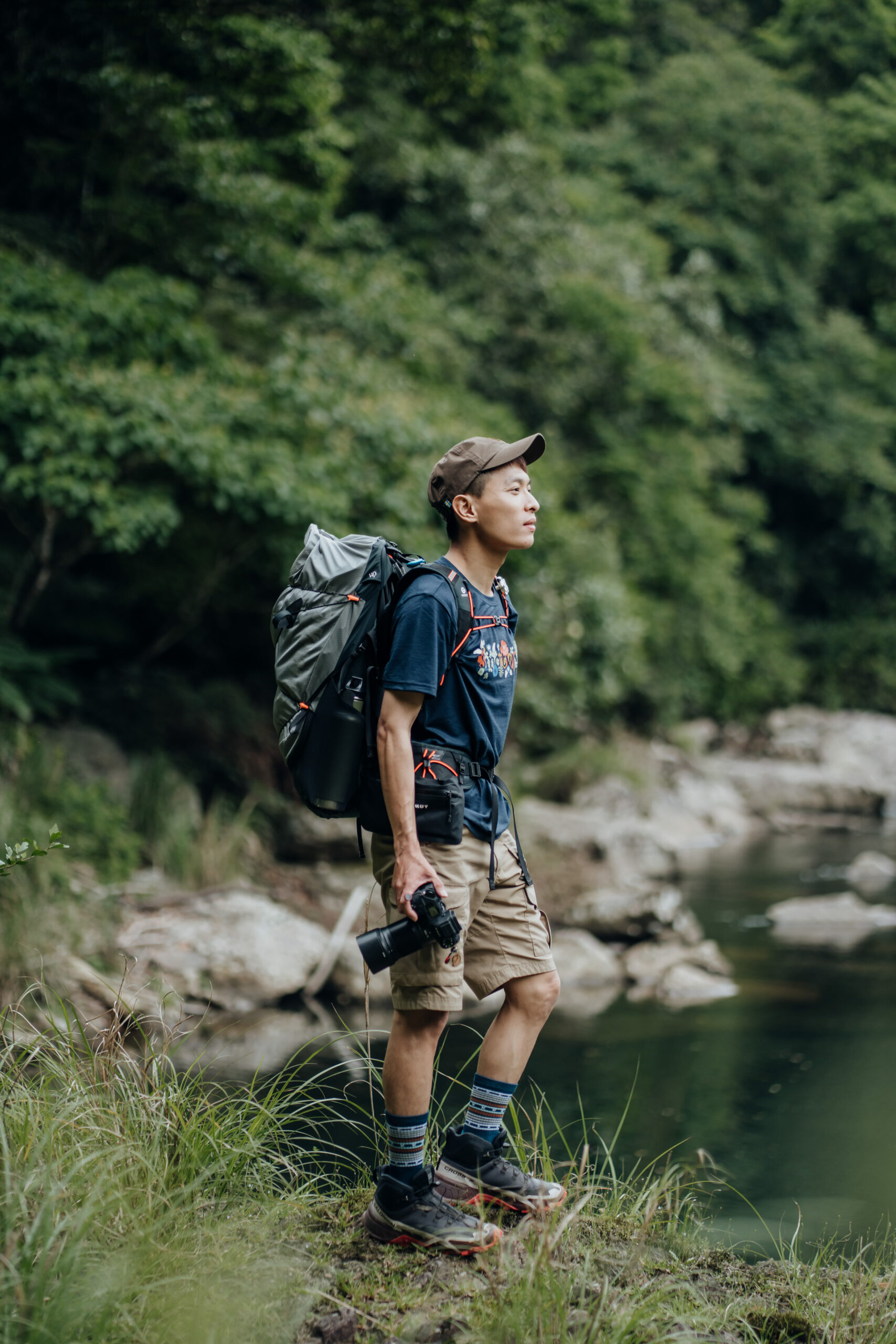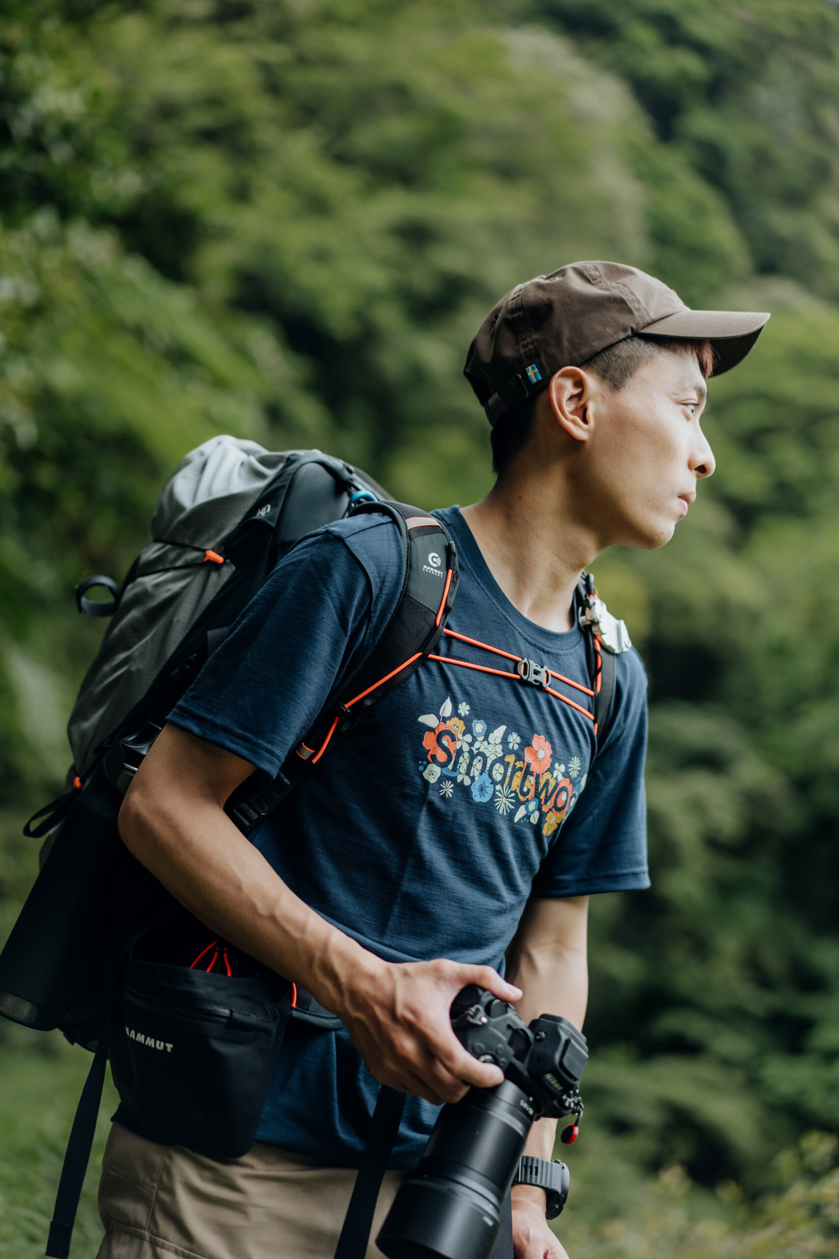 時節已過立夏,春暖花開的春日漸漸遠去,身體能清晰感受到炎夏已慢慢靠近,走在灣潭古道上,潮濕悶熱的空氣包圍著我們,清晨甫從台南北上的康康告訴我:「2019 年也是這個時候,我第一次上合歡山,就對山岳深深著迷。」跟大部分人上山的理由相同,為了欣賞美景,康康起初是為了拍攝銀河,因此接觸了山岳,而當時他則是婚紗店的攝影工作者,一次登頂取景的過程中,心裡的聲音告訴他,為何不試試將興趣與工作結合?再加上社群喜愛他的朋友指定合作後,他將人像攝影與戶外影像做結合,在 2021 年於合歡山完成了他第一對高山婚紗作品,自此之後的廣大迴響,亦讓他更堅定走自己的路:「能將專業與興趣結合,是最美好的恰如其分。」康康用這句話為自己在人像攝影及山岳影像創作的結合,下了恰到好處的註記。