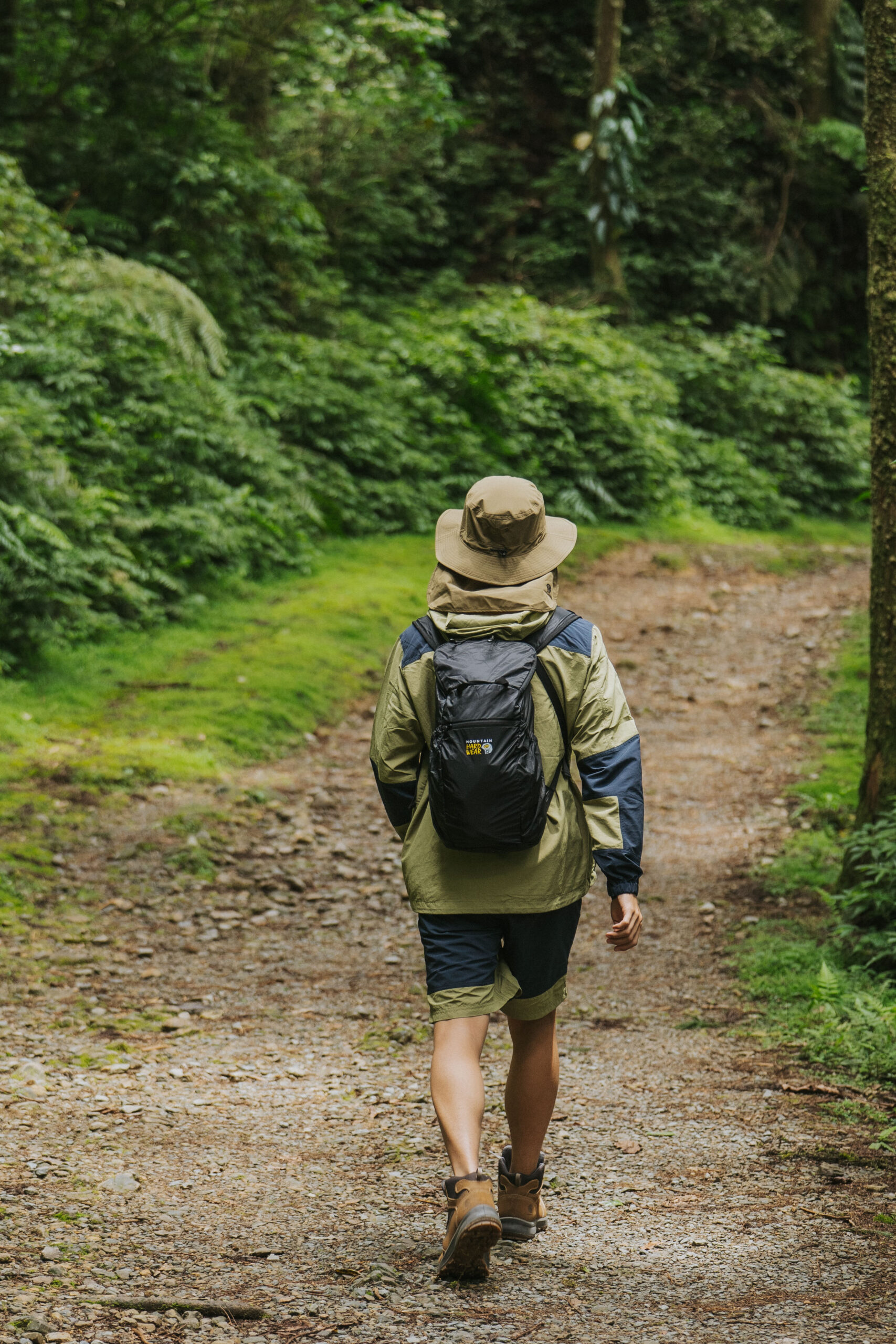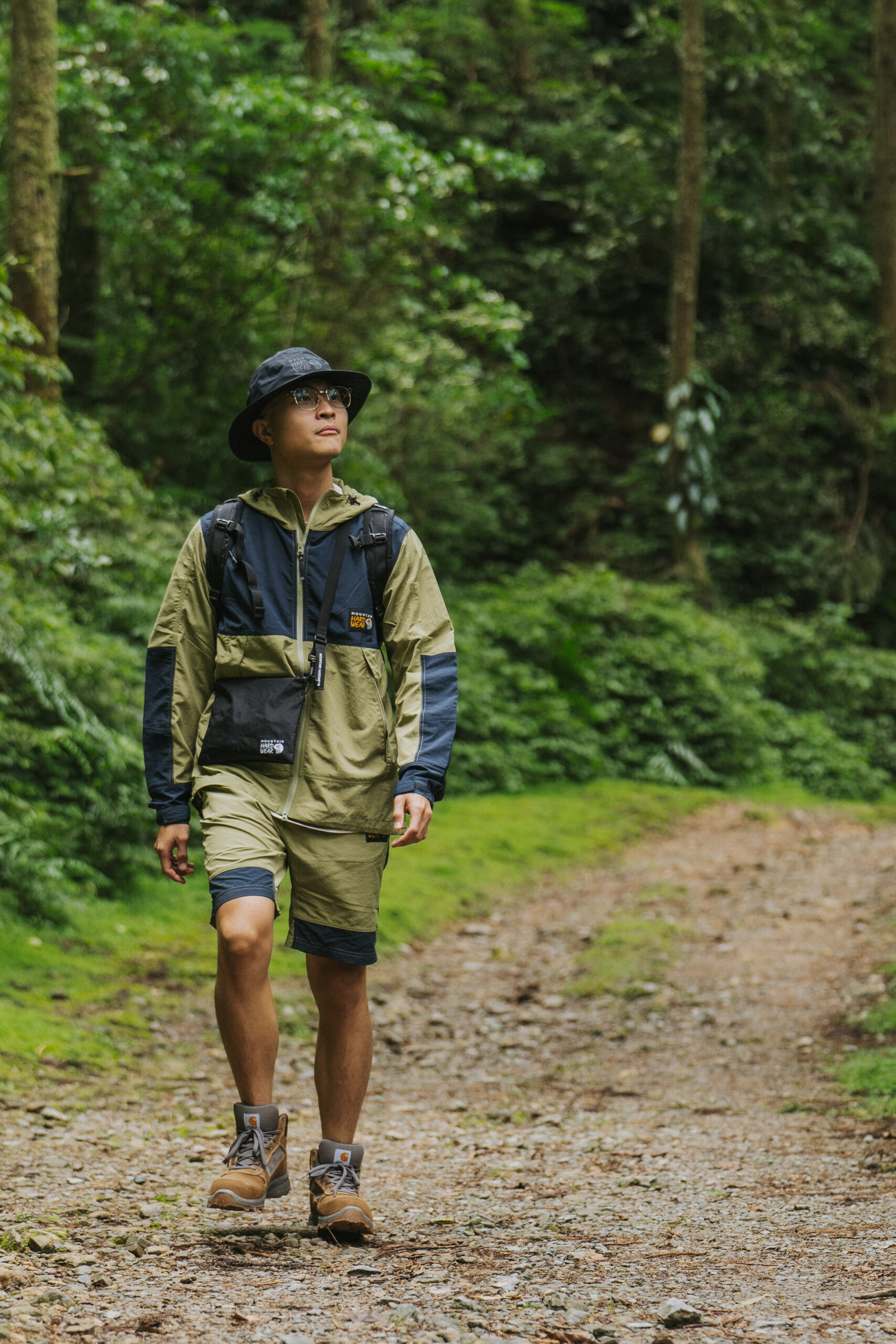 ▲ 面對戶外炎熱潮濕又多變的天氣,Wei 今日實著 Mountain Hardwear Camp 4 系列日系款防曬防潑水連帽外套及防潑水快乾短褲,並搭配 Cohesion Hat 日系輕量防水漁夫帽,讓享受戶外 Me Time 的同時,也能「From Head To Toe」保持全天候乾爽舒適,進而浸心感受大自然的給予。