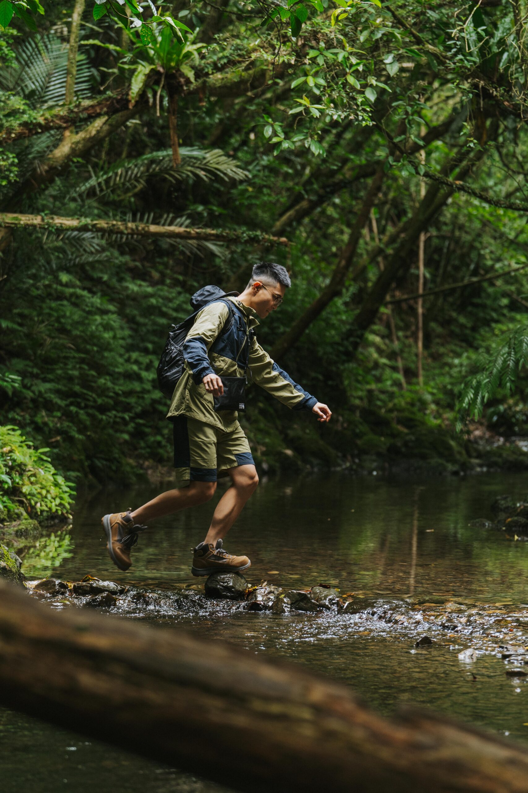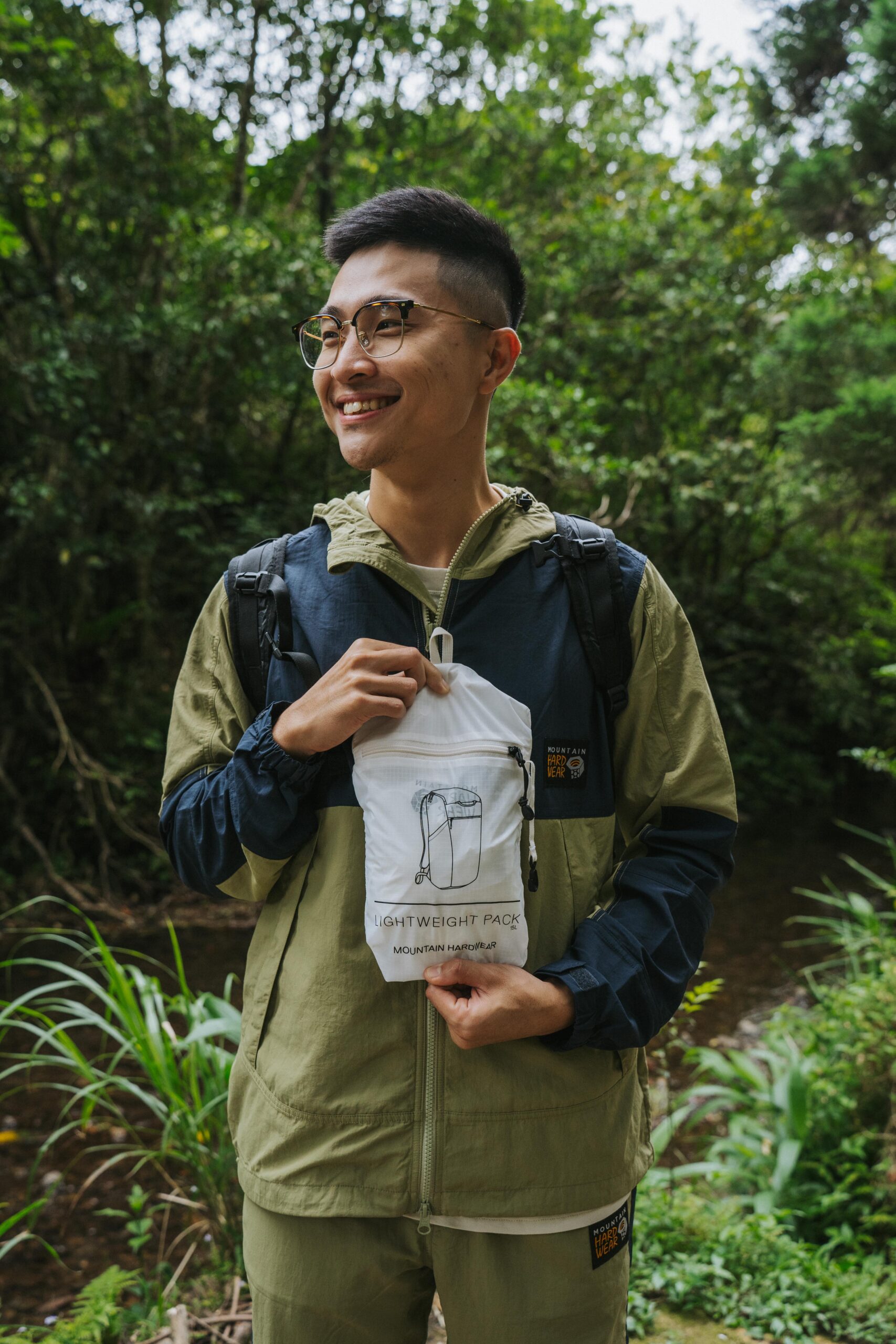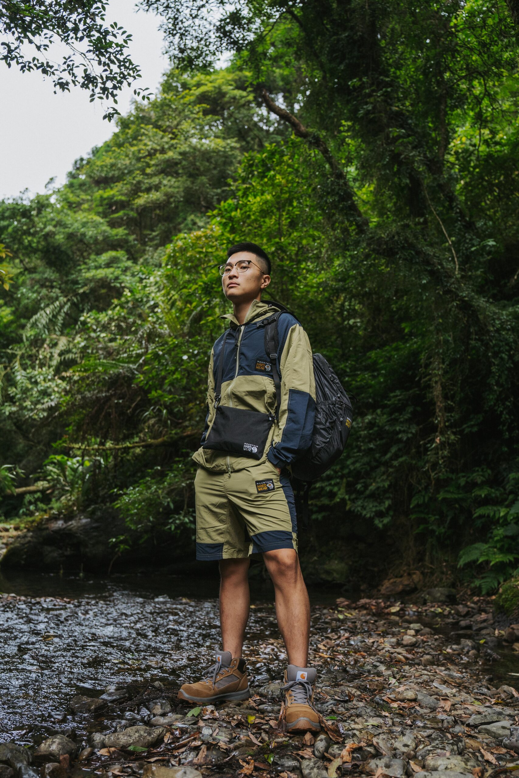 「今天穿上這套 Mountain Hardwear,比我想像中的輕薄,剛剛即便被大量潑水也依然保持全程乾燥,重點是還很帥!」Wei 話鋒一轉對於今日實著這套 Mountain Hardwear 日系款品頭論足一番。而接下來安排許多探索台灣戶外的行程,下個月計劃前往新竹羅山林道露營的他,正好可以這套 Gorpcore 衣著,從城市到山林「From Head To Toe」一次搞定。