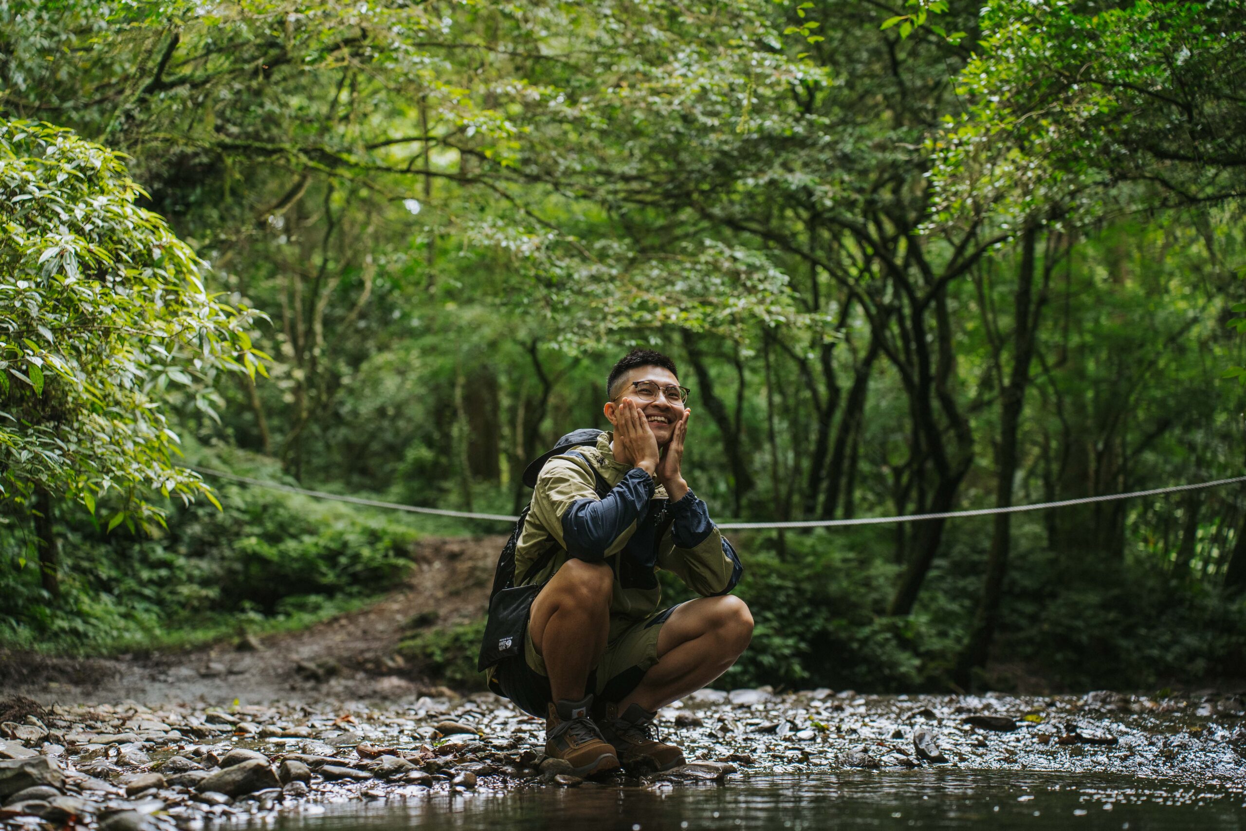 面對炎夏屢創新高的溫度,你有什麼戶外活動解方?野溪露營是許多人的首選!這天我們來到了擁有台版奧入瀨溪之稱的坪溪古道,來場日系 Solo Camp!Wei 邊掬起沁涼溪水邊與我們分享他與戶外的初相識:「小時候,爸媽總會帶我和弟弟去露營,我想喜歡戶外的基因是從小埋下。」小時候跟著爸媽露營,並不覺得有什麼特別,直至親自踏足澳洲這塊人口與台灣相仿,面積卻大上超過 200 倍的土地後,開始愛上戶外活動,自由潛水、攀岩、走繩、露營,甚至釣魚,都是 Wei 在澳洲工作之餘,從事的戶外活動,其中露營和自由潛水更是他最喜歡的戶外活動。