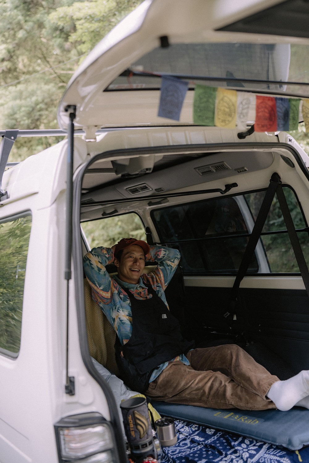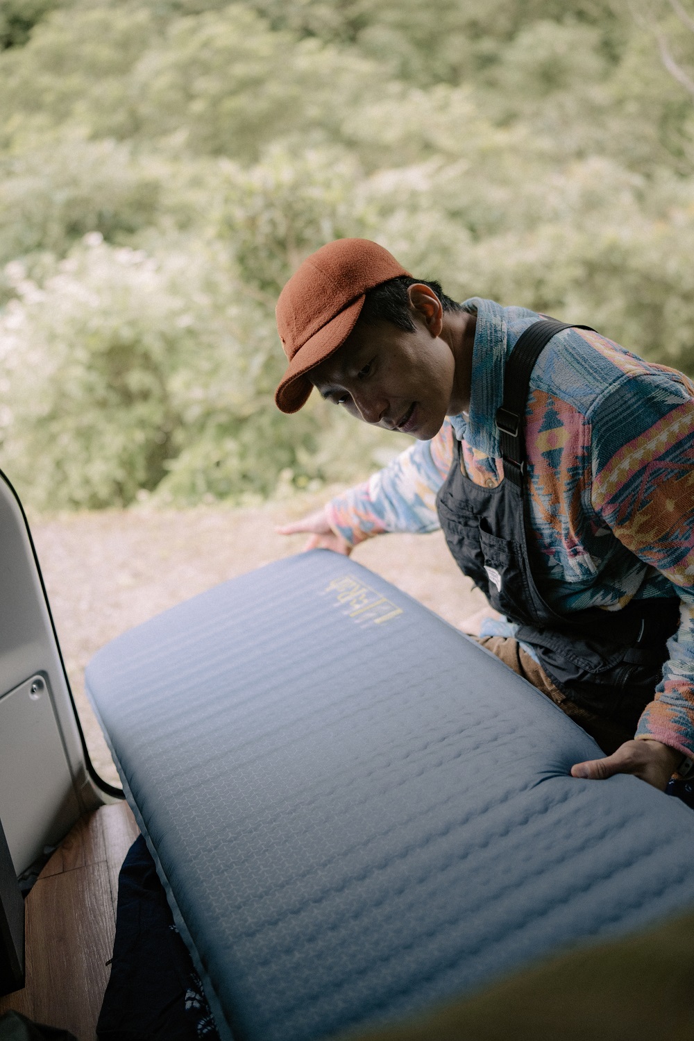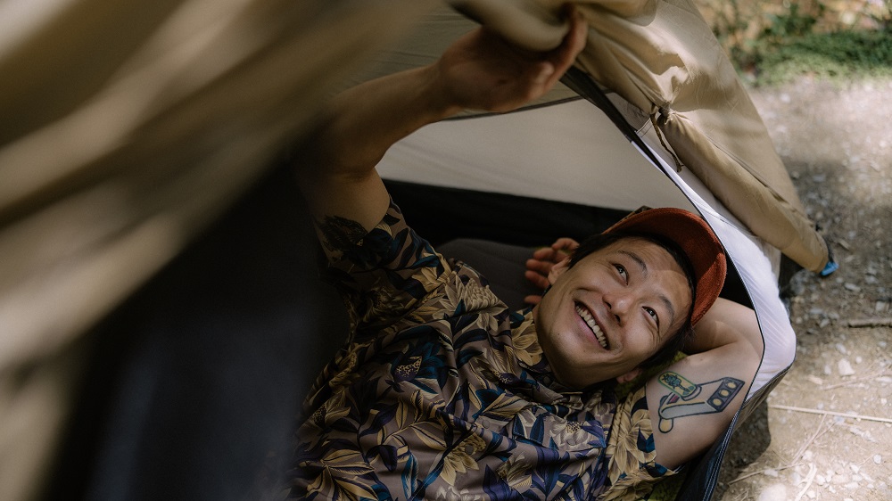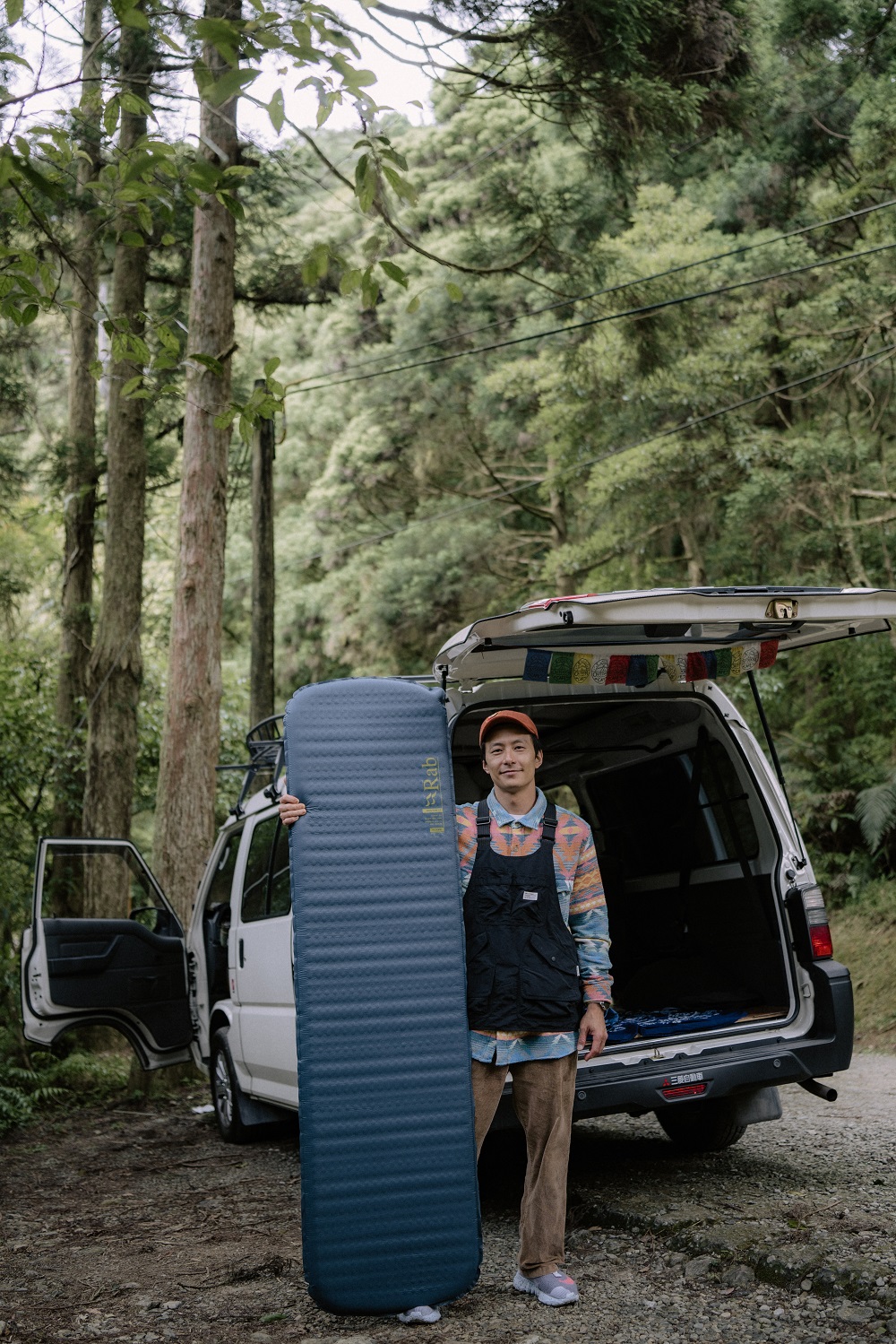 疫情的時候,Elmo 也繼續發揮美國公路旅行的靈魂,和女友規劃了一個月的環島車泊,「不過看著小白好好一台車,結果打開後車廂放了兩塊蛋殼睡墊,好像真的滿違和的。」Elmo 不好意思的說著。接著拿出 Rab Exosphere 3.5,收納時的體積較前兩款大,推薦作為露營或是車泊使用。「停好車之後,就要開始一連串的準備工作,Exosphere 3.5 自動充氣的功能,可以直接打開後就放在一旁,佈置完之後,再補氣充飽就大功告成,不用花時間再做充氣,相當便利。」果真我們泡完咖啡後,睡墊也充氣完成。也讓 Elmo 大讚,車泊要夠 Chill ,儀式感也不能少,一換上充氣睡墊,整個氛圍都不一樣。