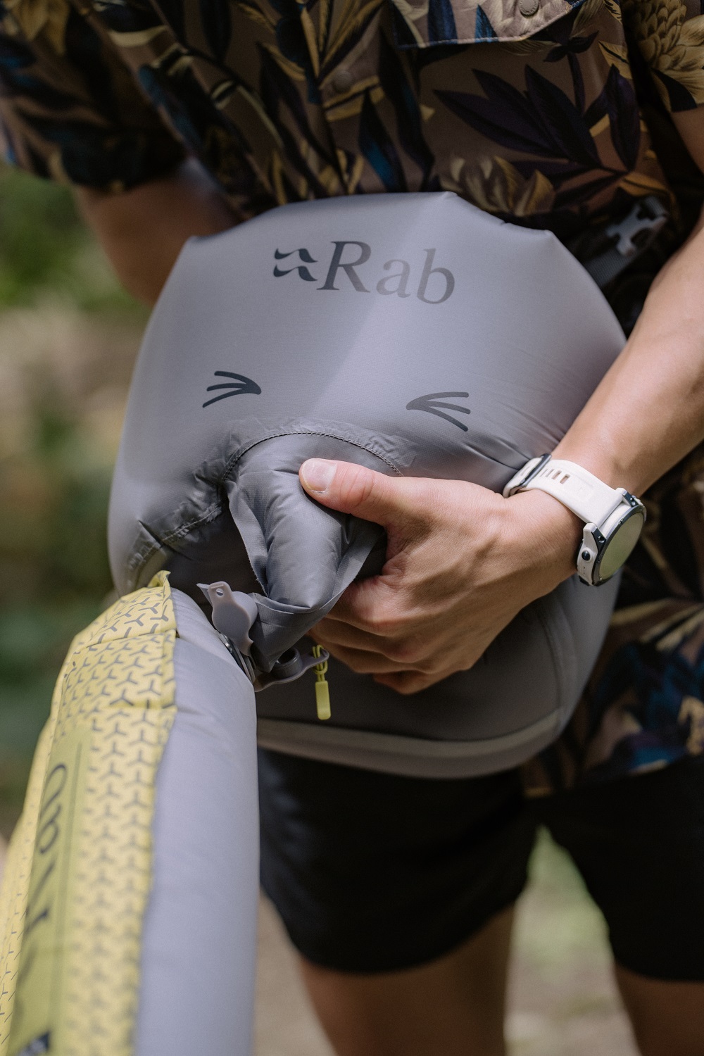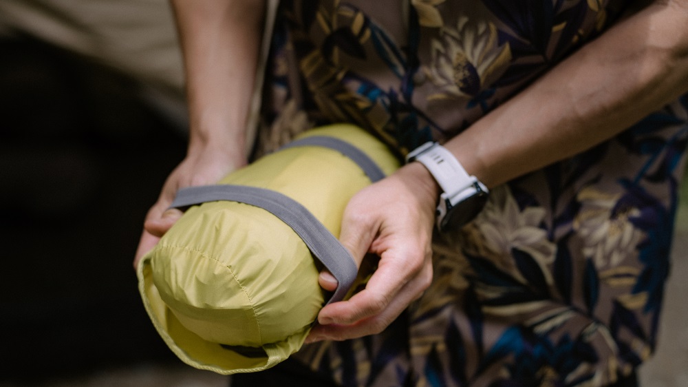 ▲Rab 睡墊的收納袋採用鬆緊帶設計,收納更方便快速。