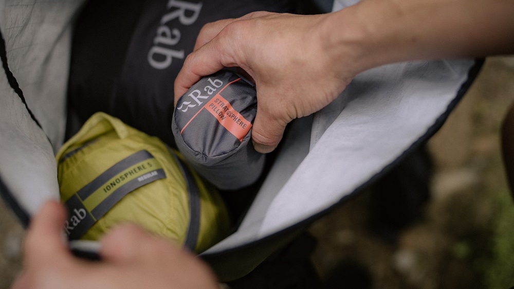 ▲Rab選用不造成環境負擔的材質為優先,在產品製作上使用100%可回收保暖材料、可回收織物面料和無氟碳 DWR,好攜帶好收納且不佔空間的特性讓在戶外環境中能輕鬆擁有舒適好眠。