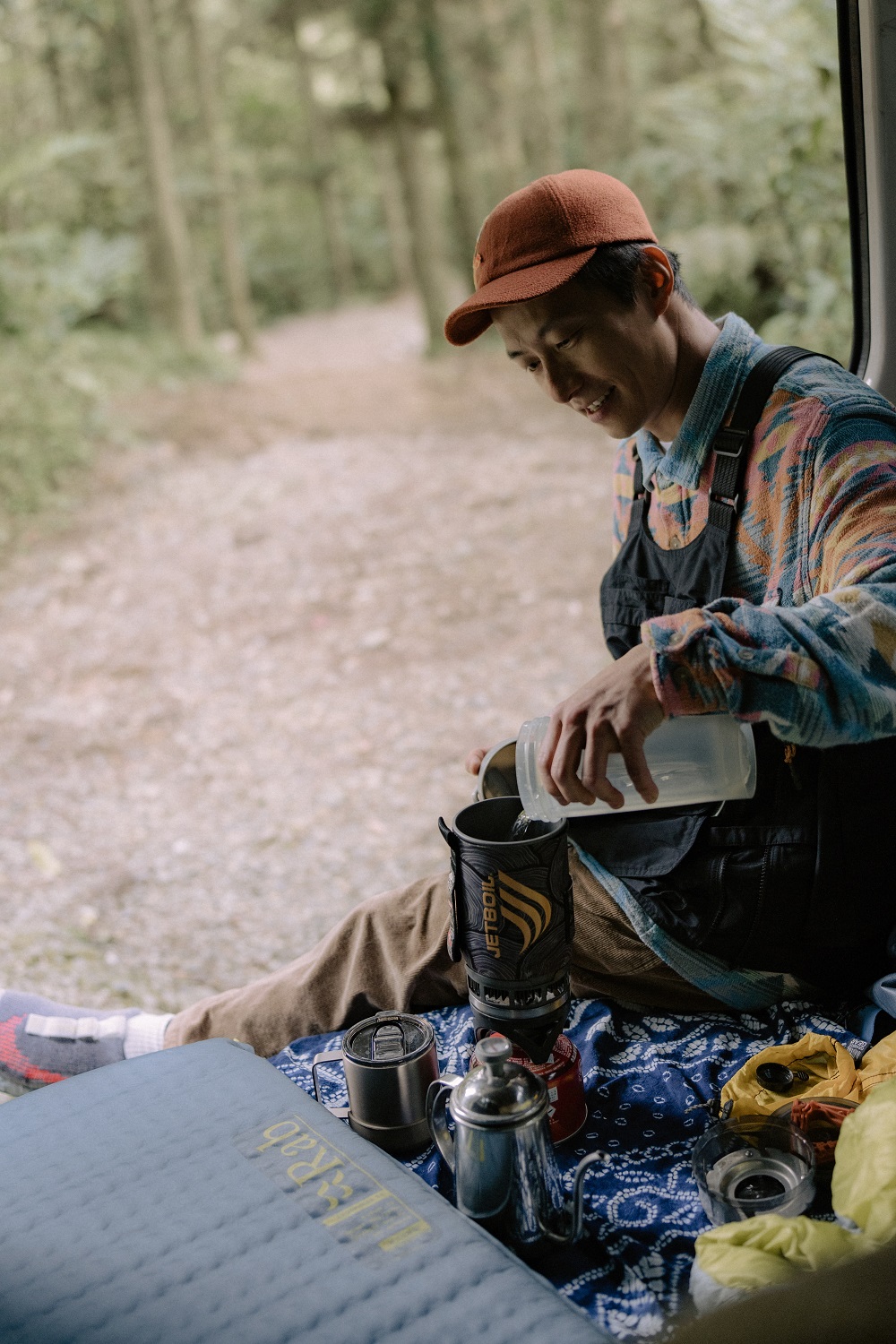 這天,我們坐上 Elmo 的得利卡”小白”一起到山中探險,一邊聽著 Elmo 播放的輕音樂,從市區到樹林中,心境也跟著平靜下來,行駛到山路的時候,Elmo 悠悠的說:「我其實滿喜歡開山路的,我覺得很有趣!」原來,幾年前 Elmo 還有在美國公路旅行的經驗,當時便是以車泊的方式完成這趟壯舉。「我那時接手了一台二手車,然後就從美西開到美東,後來車放了一年,我又飛到美國,從美東再開回美西,把車賣掉。」車程的距離,實在讓人難以想像,但 Elmo 當時的路線大多以行經沿途的國家公園為主,駕駛於大自然間,邊欣賞美景一邊開車,加上有女友換手,也將車程的辛勞淡化許多。