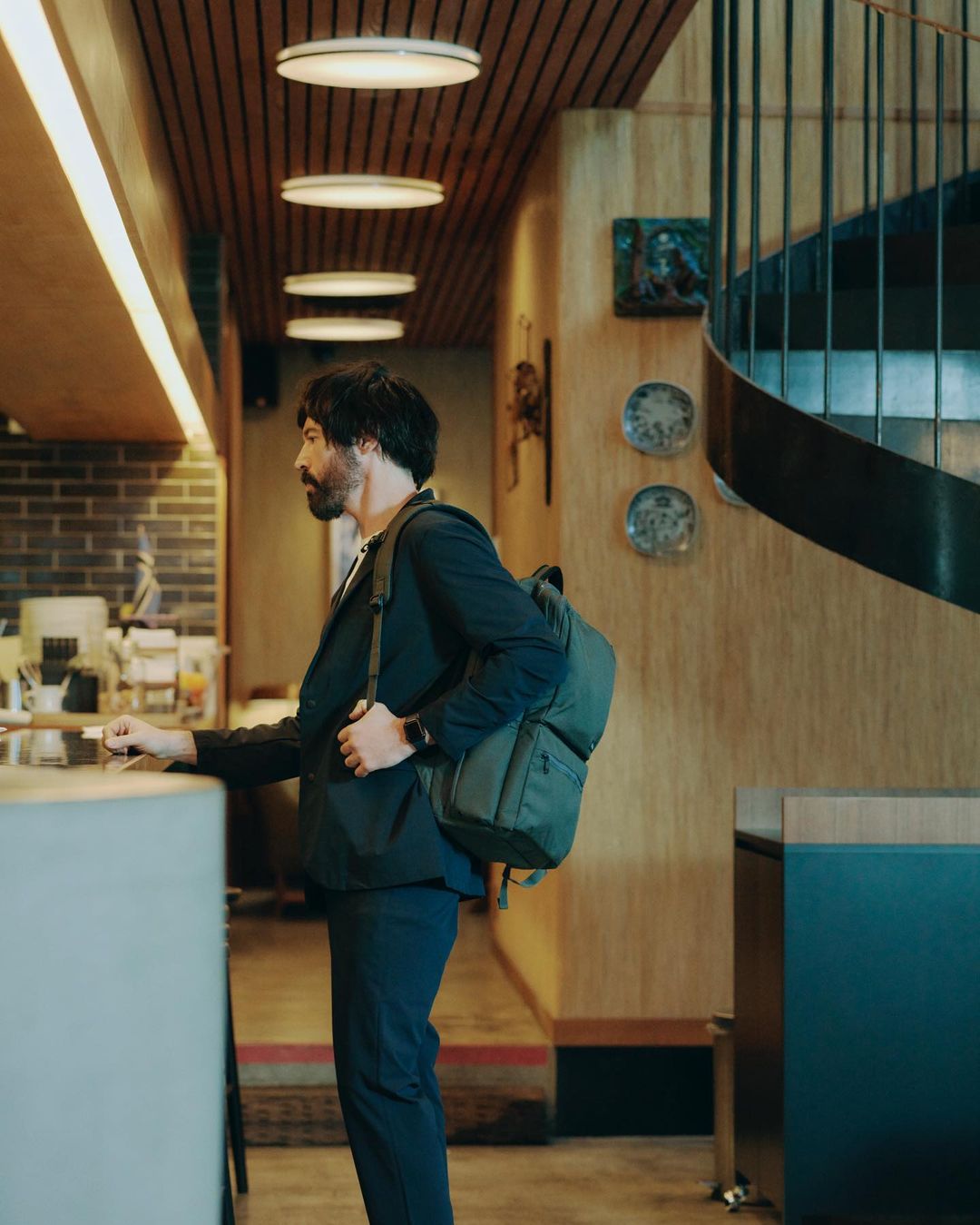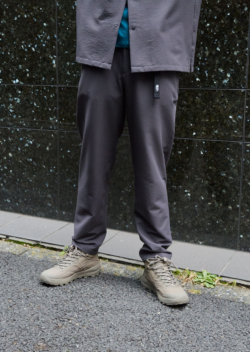 西裝外套翻領背面有一個隱藏式口袋,是與 Alpine JK 的設計致敬;而西裝褲的腰帶設計靈感來自登山扣。