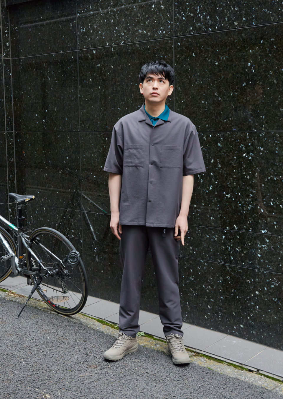 襯衫及褲子皆採用輕量的聚酯纖維,且具有彈性。防水網狀面料透氣可抵禦小雨,並具有UPF30-50+的防曬係數,日曬雨淋都不擔心。並具有抗皺性,隨時保持立挺的狀態,材質也方便自行清洗,照護衣物更容易。寬鬆的版型,從外出到居家休閒,各種場合都可以穿,是春夏裝扮中不可或缺的單品。