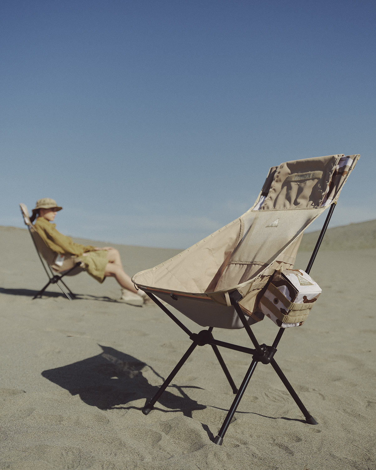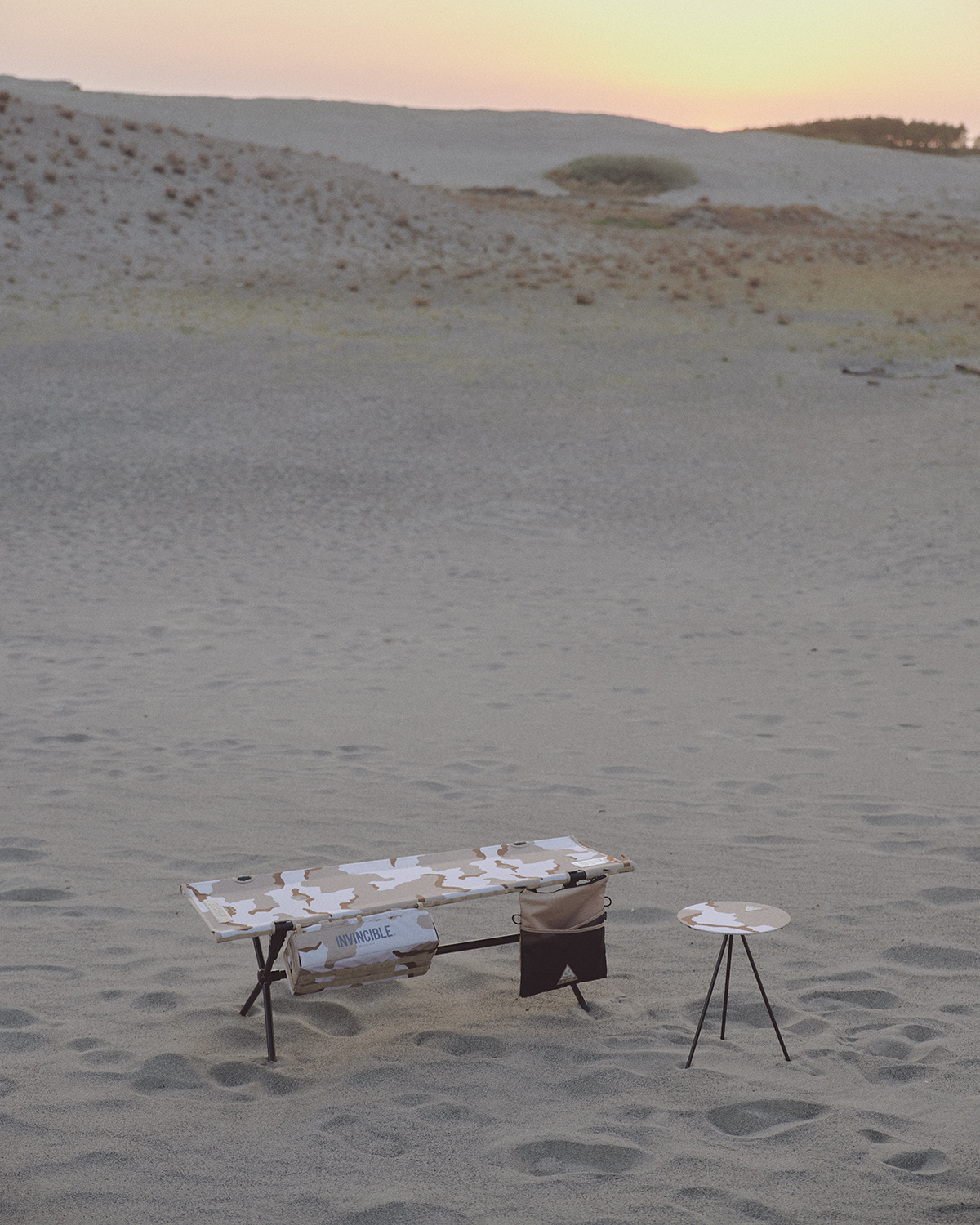 沙漠迷彩源生於特殊沙漠地形的隱蔽圖騰,INVINCIBLE® 將此特殊隱蔽性擷取為設計靈感,如同 INVINCIBLE® 日常的隱蔽低調,但現身時往往就有讓人驚艷的存在感,本次共推出六款產品,包含 Tactical Sunset Chair、Tactical Bench 戶外長椅、Table O、Tatctical Table Side Storage 儲物包件(S、XS)及 TERG Sacoche Std 側背小包。