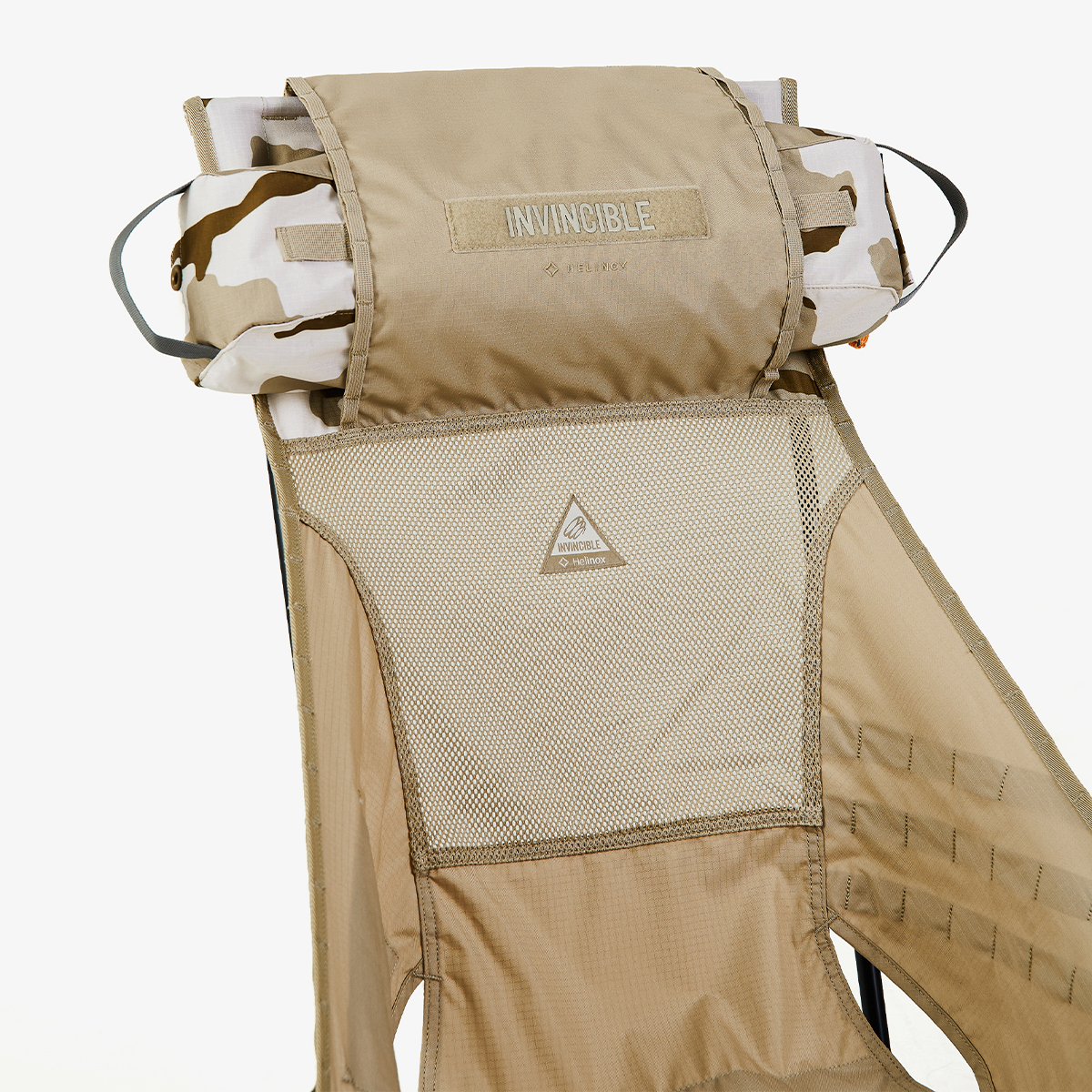 台灣潮流品牌 INVINCIBLE® 繼去年與專業戶外生活品牌 Helinox 雙方首度合作引爆流行街頭的聲勢後再次二度合作聯名,以「Tactical Storm」作為設計靈感。同時,在保持 Helinox 產品的品質和功能性前提下,全系列以視覺搶眼的沙漠迷彩做為視覺主軸,更加入了街頭流行中的側背小包做為個人搭配,讓整系列產品可以在戶外和室內都能使用。