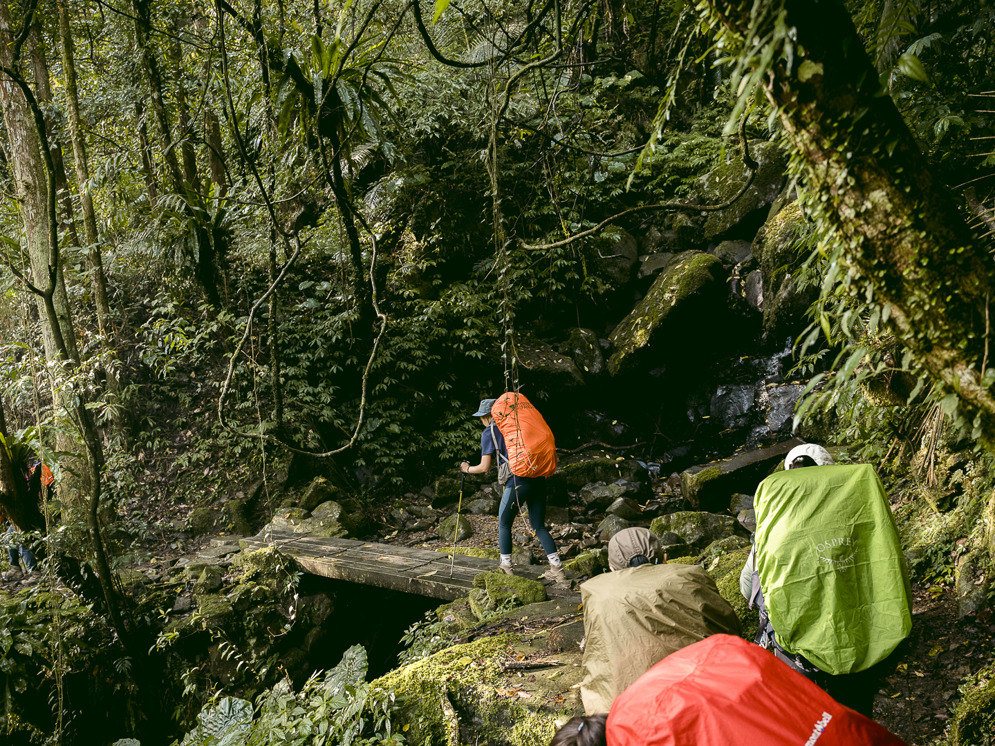 ▲ 走在堅持就地取材,以維持原始樣貌的石階或木製便橋,頂上籠罩著我們的是茂密的樹林,這般身歷其境的叢林感,若不是親自走一趟,很難想像 10 分鐘前,我們還踏在柏油路面。