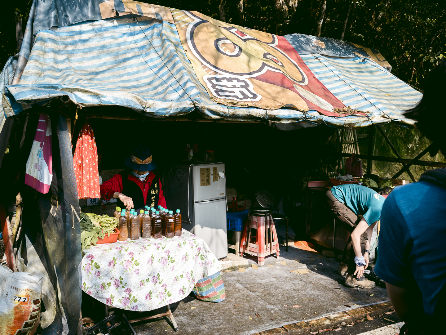 ▲ 走出灣潭古道,沒了樹蔭遮蔽,顯得更炎熱,轉角遇見販售青草茶的婆婆,大家也休息消暑一下