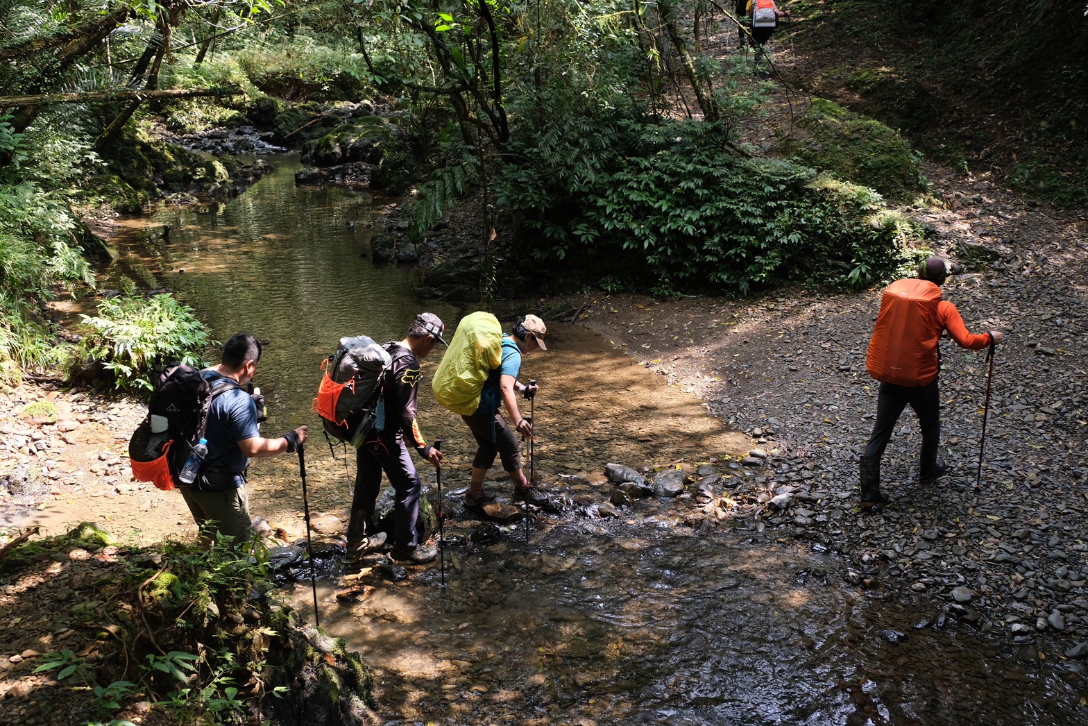 ▲ 坪溪古道亦有需要穿越溪流,踏足溼滑溪石的路徑。