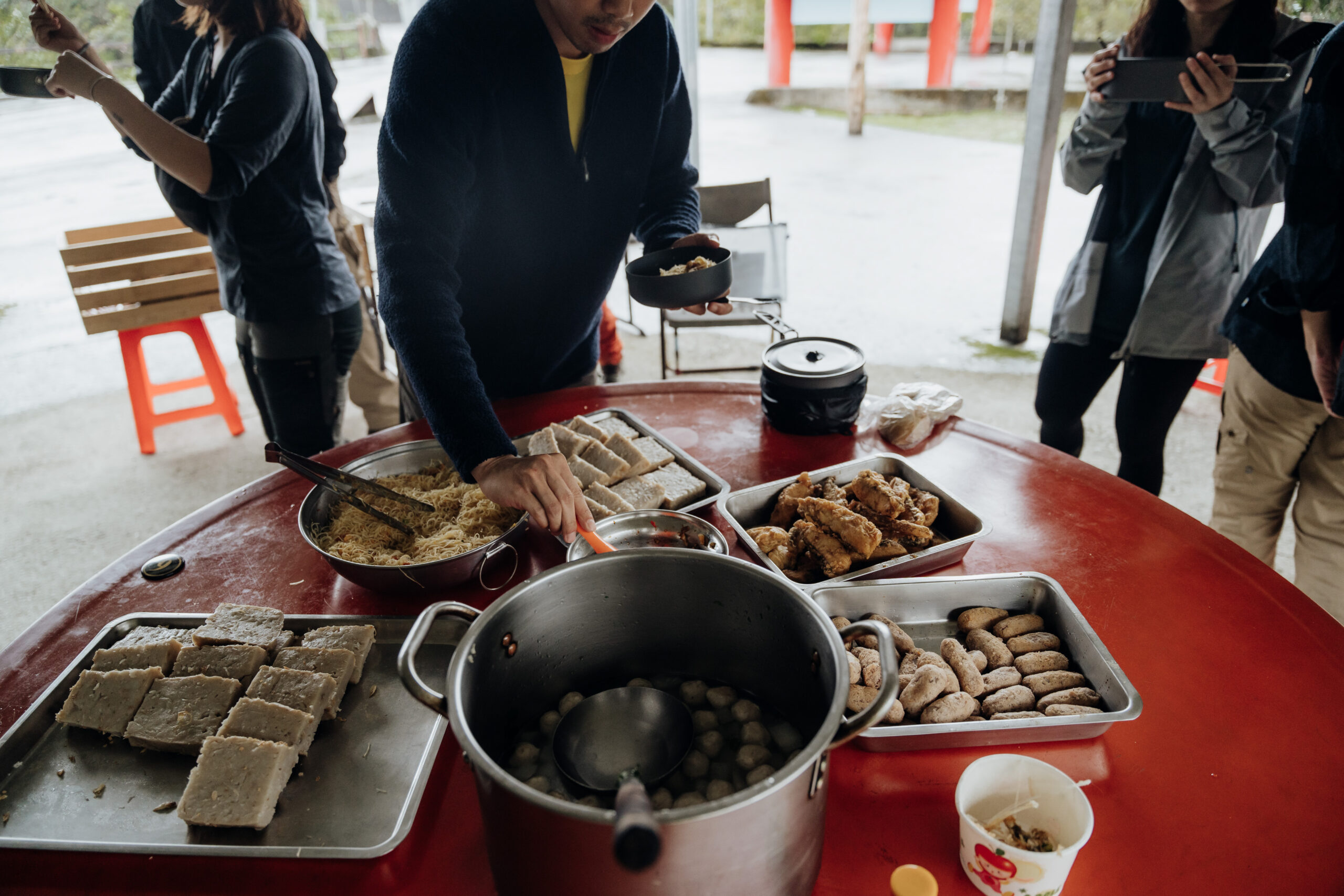▲ Fjällräven Taiwan 安排的小驚喜實在太暖心了,炒米粉、蘿蔔糕、炸芋粿,還有熱騰騰的魚丸菜頭湯,在這又濕又冷的天氣,更勝山珍海味啊!