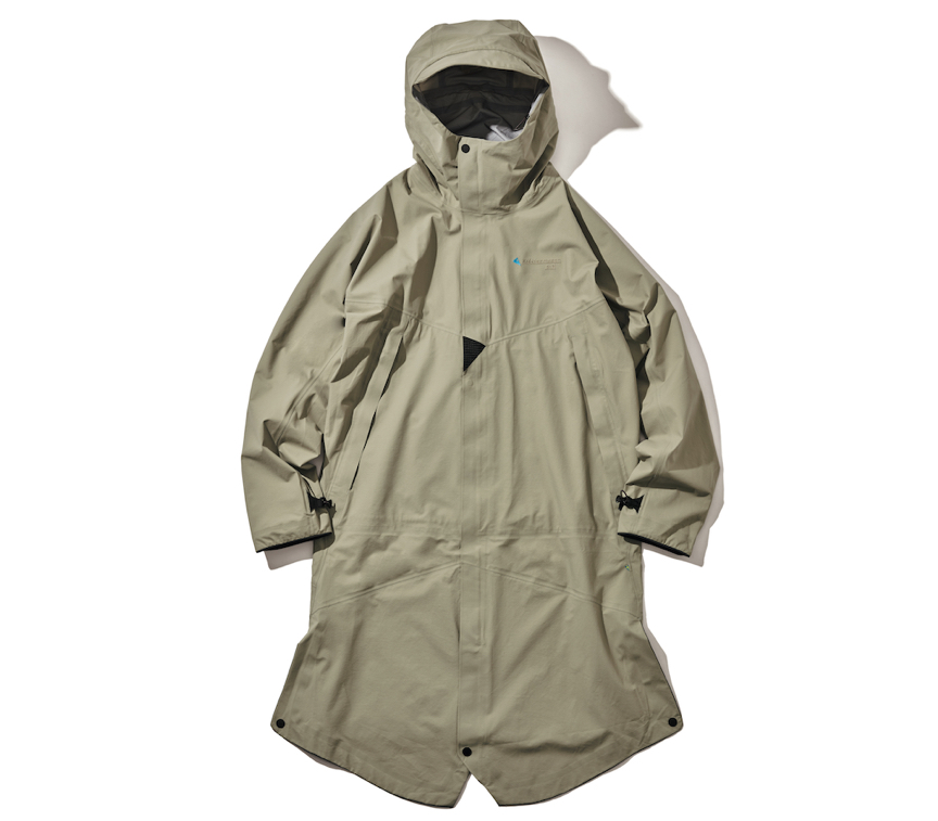 來自瑞典的攀山鼠 Klättermusen 的長版硬殼外套,這款定位適用三季款外套使用了 3 層材料 Cutan®,從戶外健行到日常應用皆適得其所,略寬版的設計,可以完整覆蓋全身,背部有一個三角空間,便於穿於背包之外。