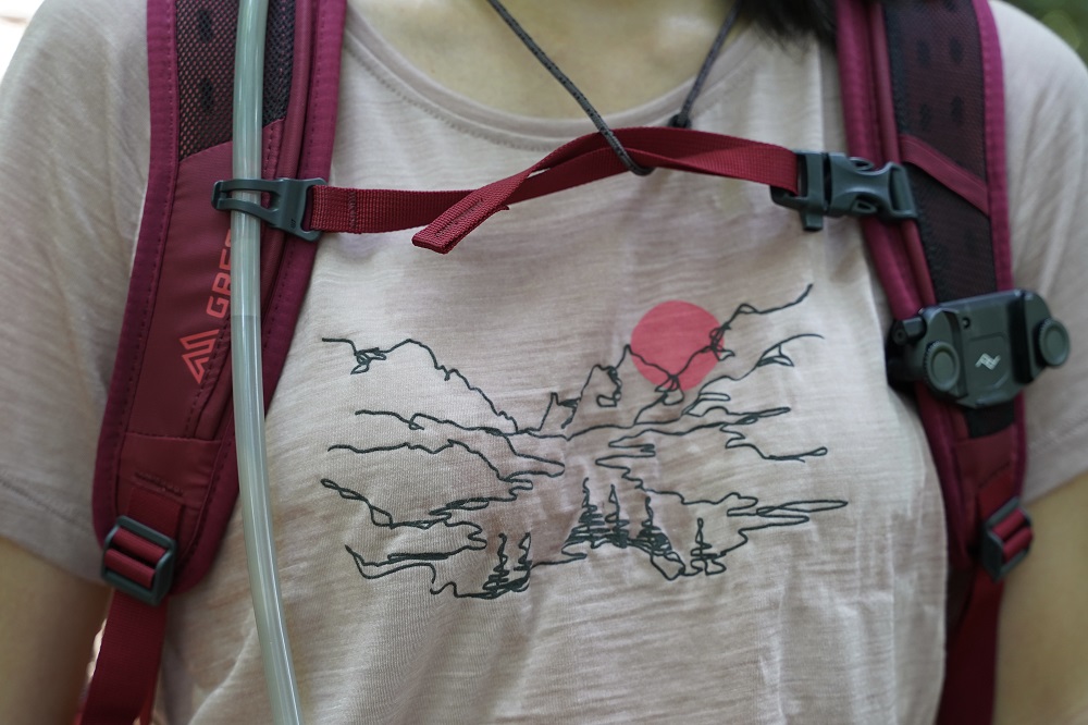 但在30幾度的夏天高溫下,低海拔無風處還是稍嫌悶熱,在海拔上升至1200左右後,氣溫下降配上稜線上的涼風,汗水很快就乾了,吸濕排汗效果還是很不錯。但郊山行程仍蠻多時間會處在悶熱的低海拔,還是會推薦在平均氣溫較低的高山上穿會比較適合。