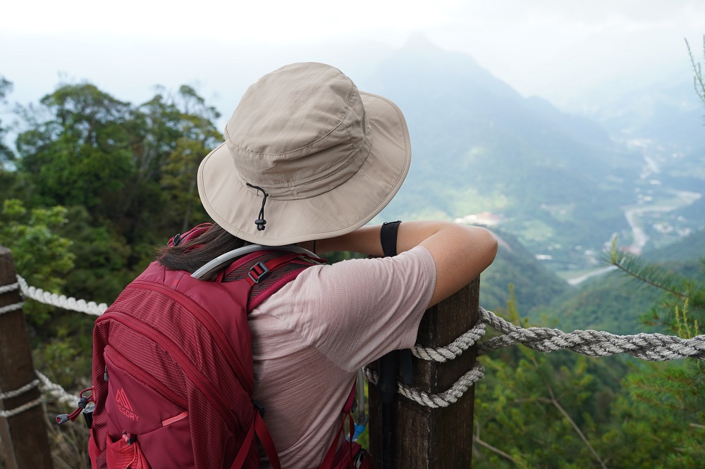 而這次前往白毛山,我在樹林中或陰影處不須遮陽時,會把下方繩子扣在背包的胸扣上,將帽子放到背後,一方面不用擔心帽子會掉,另一方面也不會勒到脖子,推薦給大家。