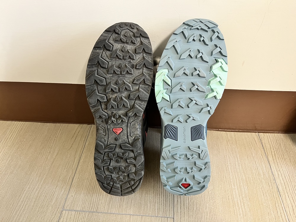 個人認為 Salomon 最大的優勢在於它的耐用度!登山鞋損壞的原因多為:鞋面損壞、GTX 防水層破損、鞋底磨平/掉鞋底等抓地力不足等。Salomon 的鞋底雖然如上所述雖然偏硬,但它的鞋底是真的真的非常耐磨,我的 X Ultra 3 爬了20座百岳後刻痕還是非常的清晰,抓地力仍良好,單看鞋底的話,說它看起來像只走了5座百岳也不為過。至於 GTX 防水層與鞋面,雖有正常的明顯使用痕跡,但防水層到目前為止都還沒有損壞,所以總體使用而言我認為是耐用度非常好的登山鞋!