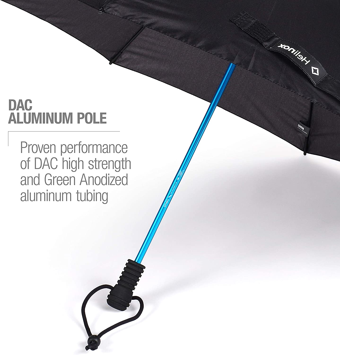 眾所皆知 Helinox 在輕量戶外桌椅佔有舉足輕重的地位 ,但卻鮮少人知道它們也有雨傘產品,這是一把能完整覆蓋使用者及背包的雨傘,傘面搭載 UPF 25 防曬性能,除具備防水功能,也能保護使用者免於紫外線傷害。
