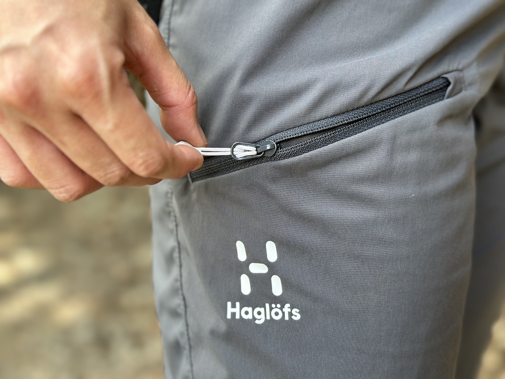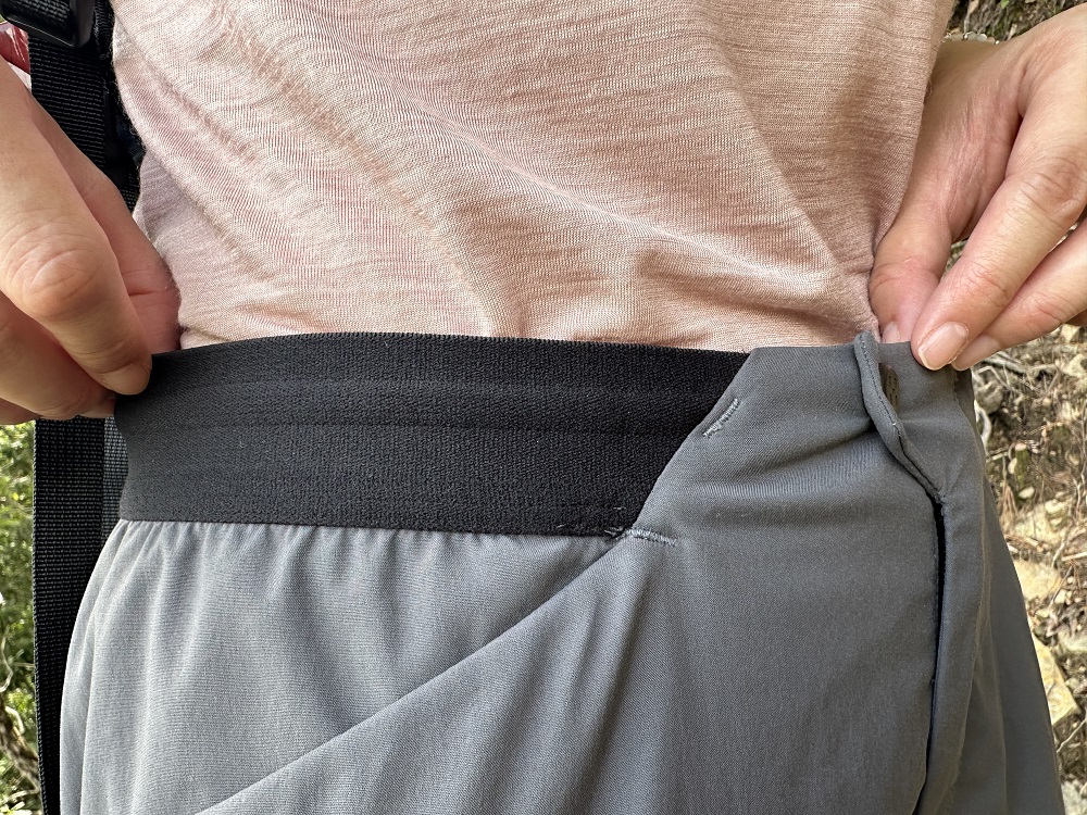 輕薄透氣的材質配上腰間鬆緊的設計,也讓整體的舒適度大大提升。另外除了前側兩個大口袋之外,在大腿側邊也有一個拉鍊口袋,放置手機或是重要物品可以更方便安心。表面無氟碳化合物的處理,增加了抗污防潑水的功能,在戶外難免有時候會接觸到樹梢之間的枝液或是陣陣白茫霧雨,這時候這個功能就可以讓我們更安全順利地完成整趟行程!