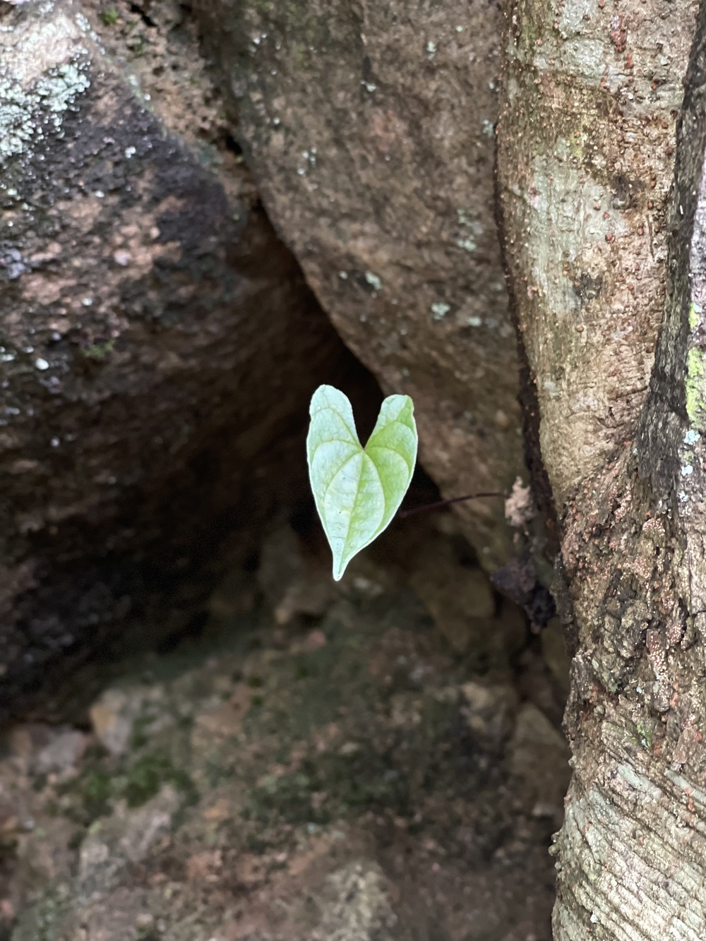 在通過稜線與石瀑的過程中,偶然,也會發現山裡的小小奇幻以及隨即可拾的各種美!比如有著許多圈圈樹瘤的大樹、長得像人面的一個大石塊、樹洞裡探頭出來的愛心葉脈、附著在樹皮上的馬卡龍菇菇。登山這件事,最美麗的就是這些過程。走著走著,就可以沿途將這些美麗一一收在心底,並分享給大家,傳遞這份愉悅與感動。