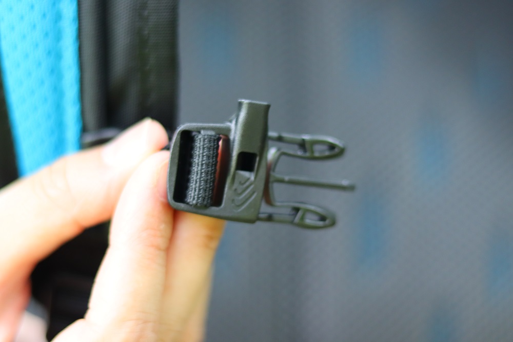 另外,分層拉鍊袋中也有一些小網袋及鑰匙扣,方便物品收納唷!小小單日健行包在設計上也不馬虎,甚至還有腰帶來減輕背負負擔。胸扣的設計當中,也可以發現其中的小巧思,胸扣上有一個小孔-求生哨,若真的發生緊急事件需要吹哨也隨手可得。