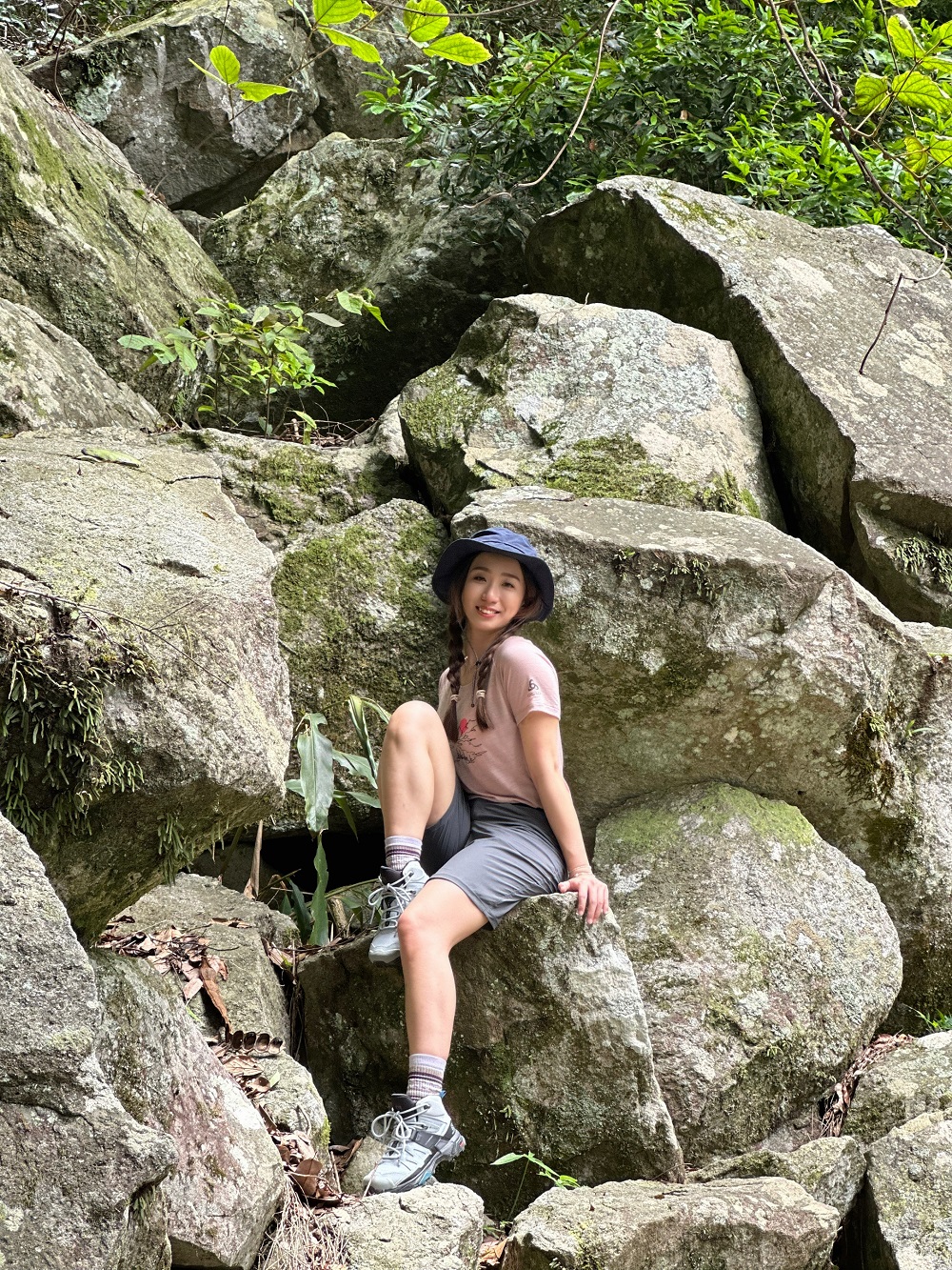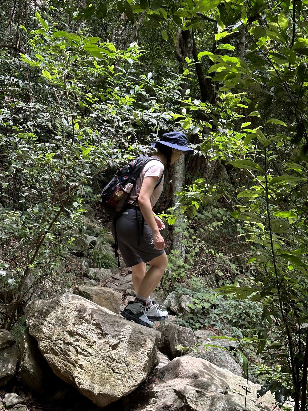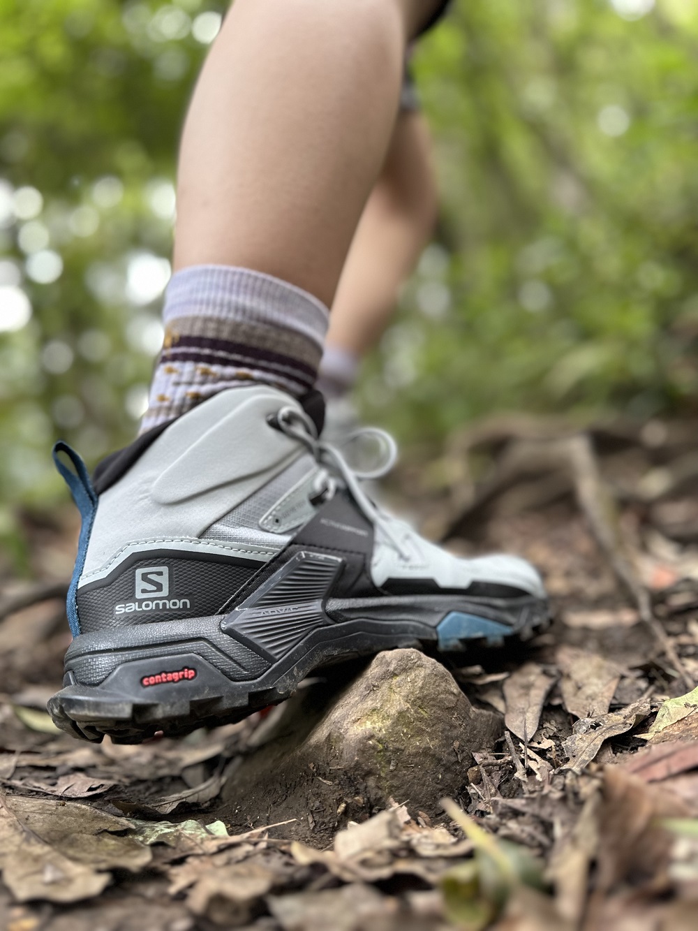在整趟東卯山的行經路段,我常在樹根、石階、鬆土、石瀑四處轉換。穿著Salomon X ULTRA 4讓我感受到非常優秀的舒適性!也因為輕巧、支撐性高的幾個特點,讓行進間更輕巧靈敏,各種地形的轉換都不是問題。最後一個優秀的重點,我想這也是多數人的一大考量!就是他超美的配色與修飾的版型,我選的是「深礦灰」的顏色,實體的顏色是非常有質感的莫藍迪灰藍色的感覺!側面軍藍、黑色的色塊撞色,讓整體樣式更豐富不單調。