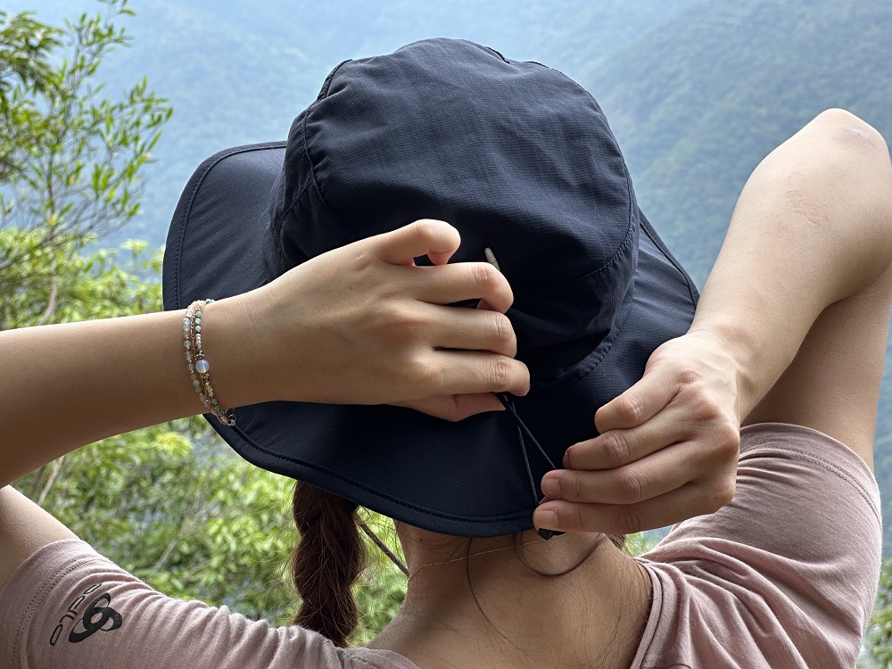 另外,輕薄可折疊也非常方便收納,也有調節扣可調整頭圍的鬆緊。對我這種頭圍超級小的人來說,可調節大小這件事情真的很重要,否則風一吹常常就被向後吹倒。