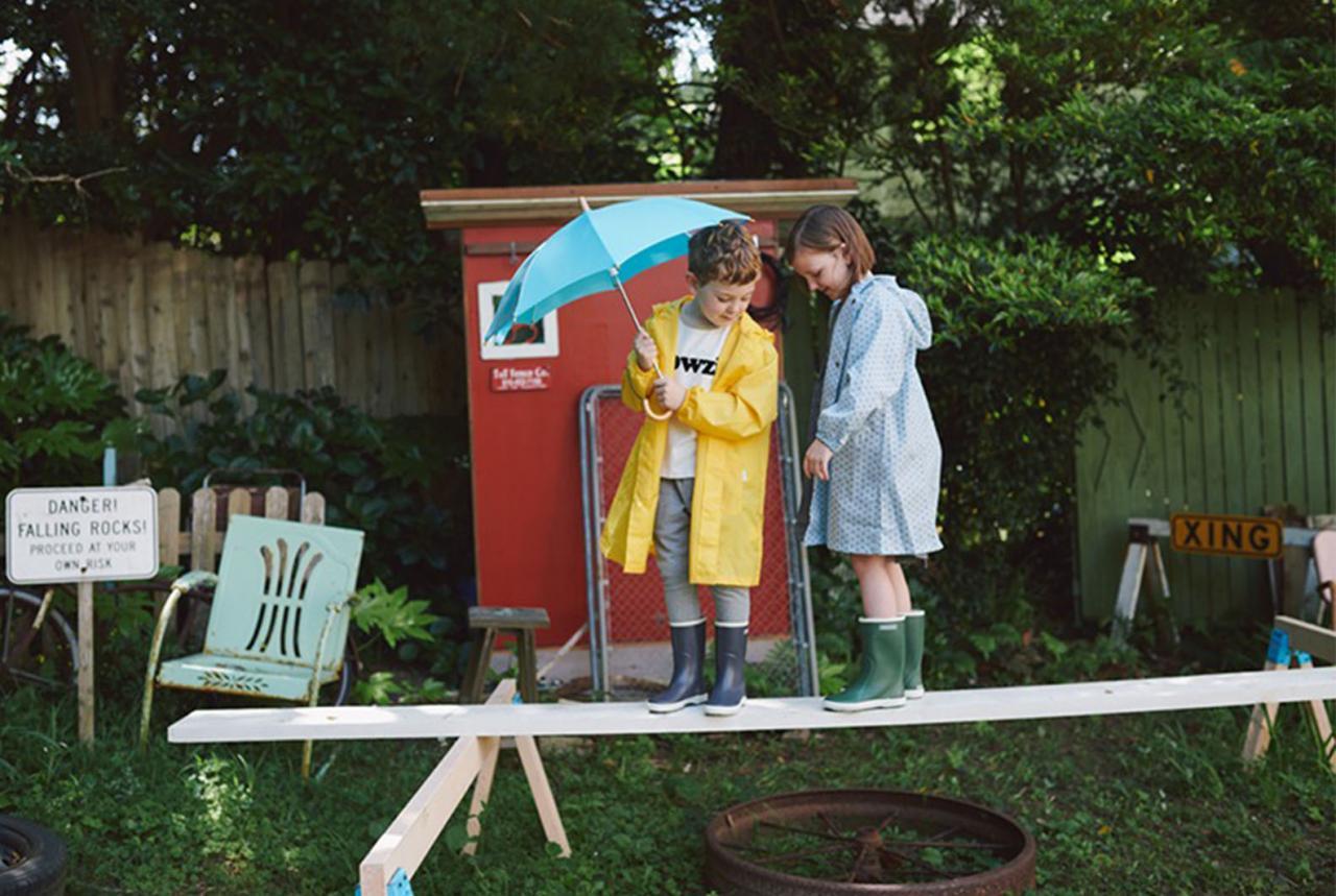 BEAMS 的雨衣有著可愛鮮豔的色彩,平時可以收納在小袋子裡頭,方便攜帶;而腳上搭配的是荷蘭 Bergstein,專為兒童打造的雨鞋品牌,有鮮豔的顏色還有舒適的內裡,讓寶貝穿上後可以盡情在雨中玩耍。