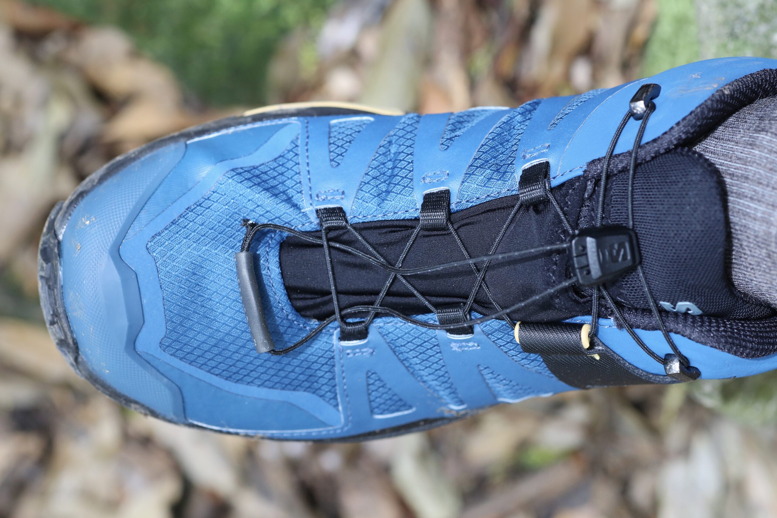快登頂前有一小段樹根盤雜的路段,而且當天因為潮濕,路面稍微有點濕滑泥濘,剛好可以測試 Salomon X ULTRA 4 Goretex 低筒登山鞋的性能。這款登山鞋有別於一般鞋款,搭載 Quicklace 快綁鞋帶系統,免去登山鞋每次鞋帶都要綁很久的困擾,綁帶可以固定得非常牢固,我行走間完全沒有鬆脫。除了鞋帶設計特殊之外,低筒設計可以讓靈活度提升,就像是野跑鞋一樣,不會有過多的束縛感,中底及大底又能提供橫向支撐及穩定保護。